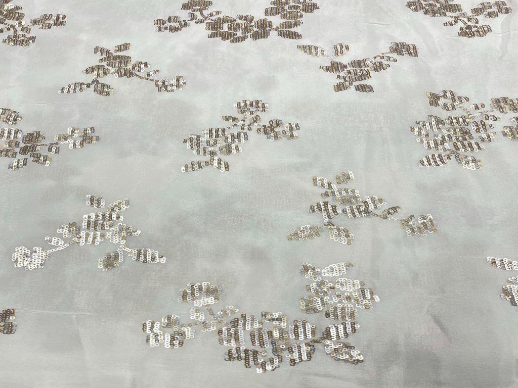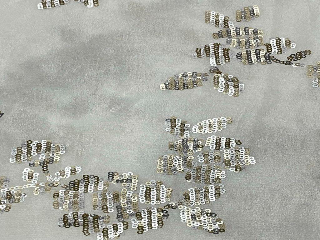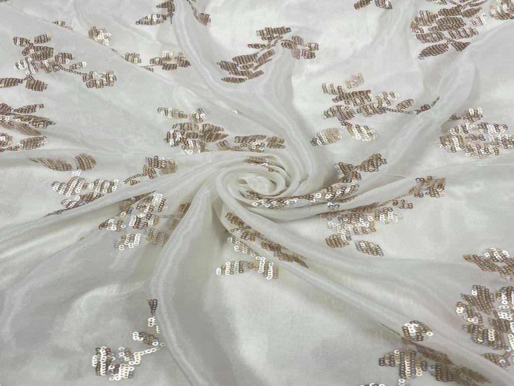Dyeable Embroidered Chiffon White Golden Abstract Width 44 Inch / 112 Cm SKU:K1591