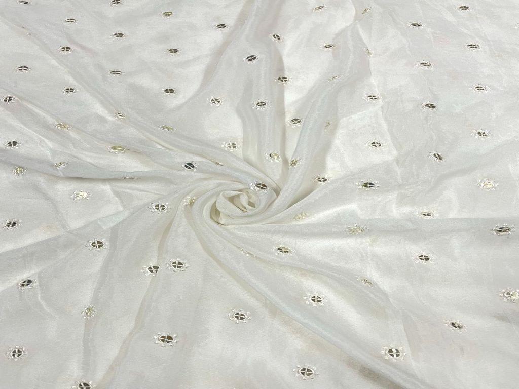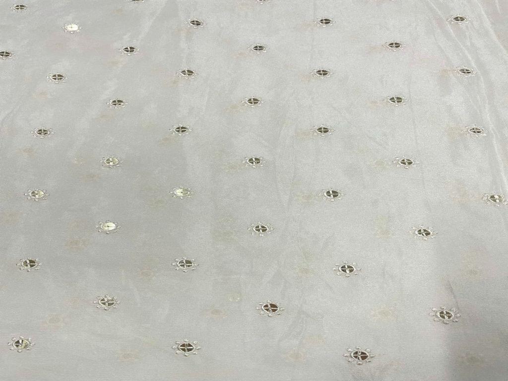 Dyeable Embroidered Chiffon White Silver Sequins Floral Width 44 Inch / 112 Cm SKU:K1585