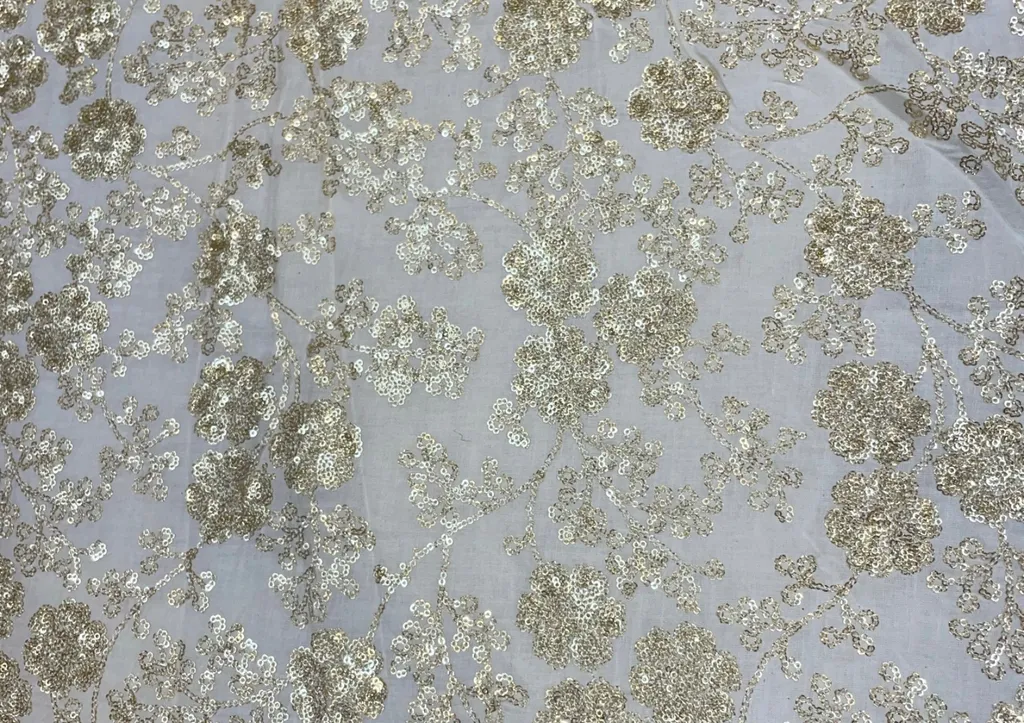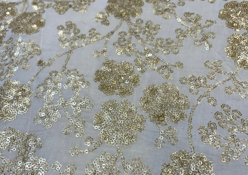 | Fabric Name | Dyeable Embroidered Cotton White Golden Floral |