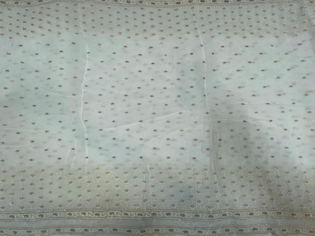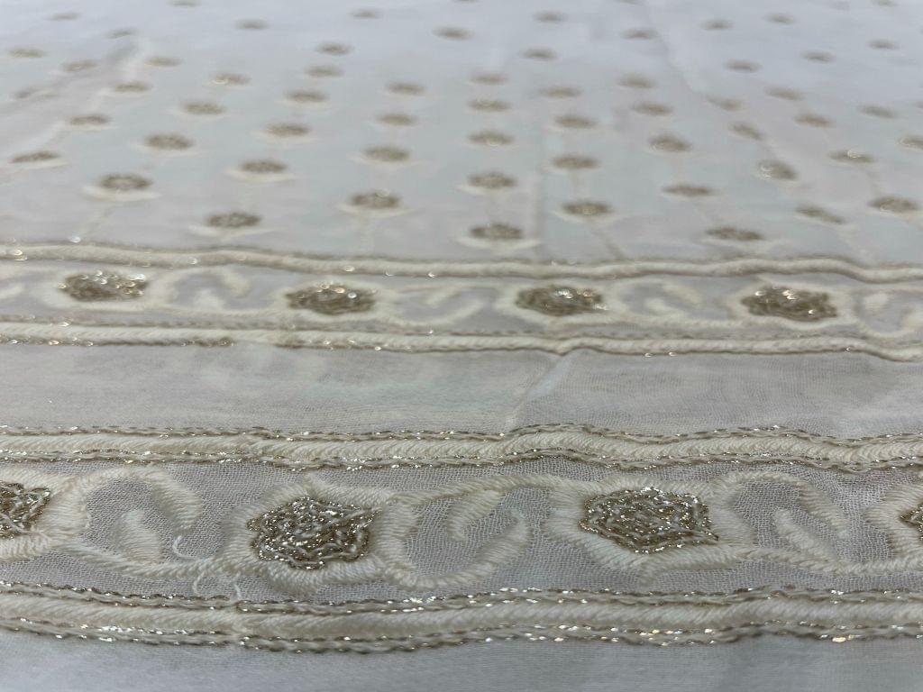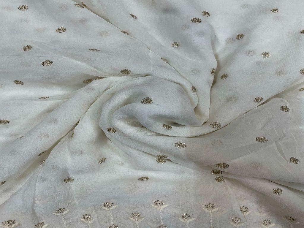 Dyeable Embroidered Georgette White Flowers With Borders 1 Width 44 Inch / 112 Cm SKU:K1505
