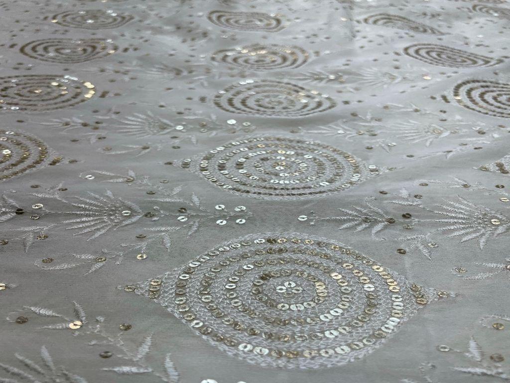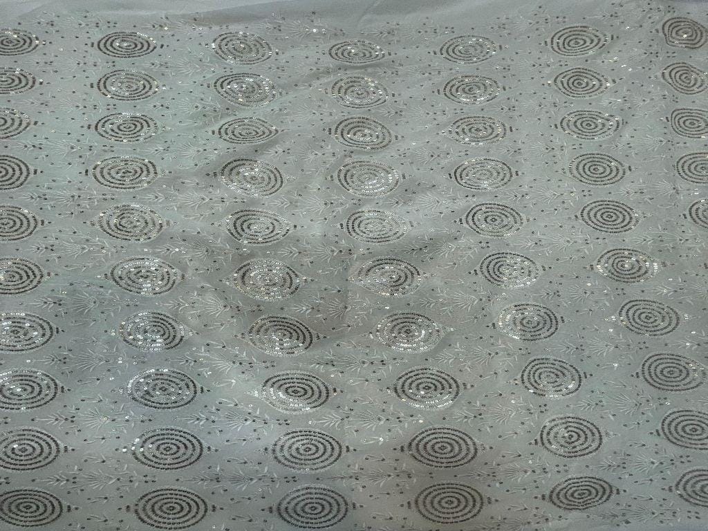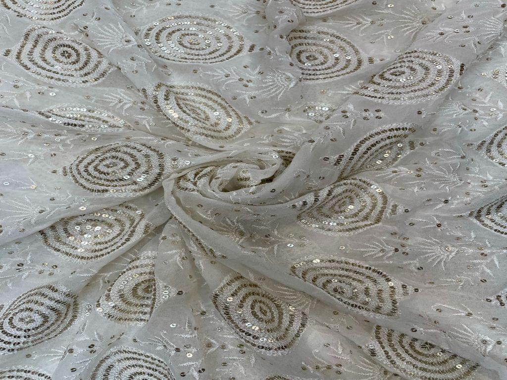 Dyeable Embroidered Georgette White Geometric 1 Width 44 Inch / 112 Cm SKU:K1875