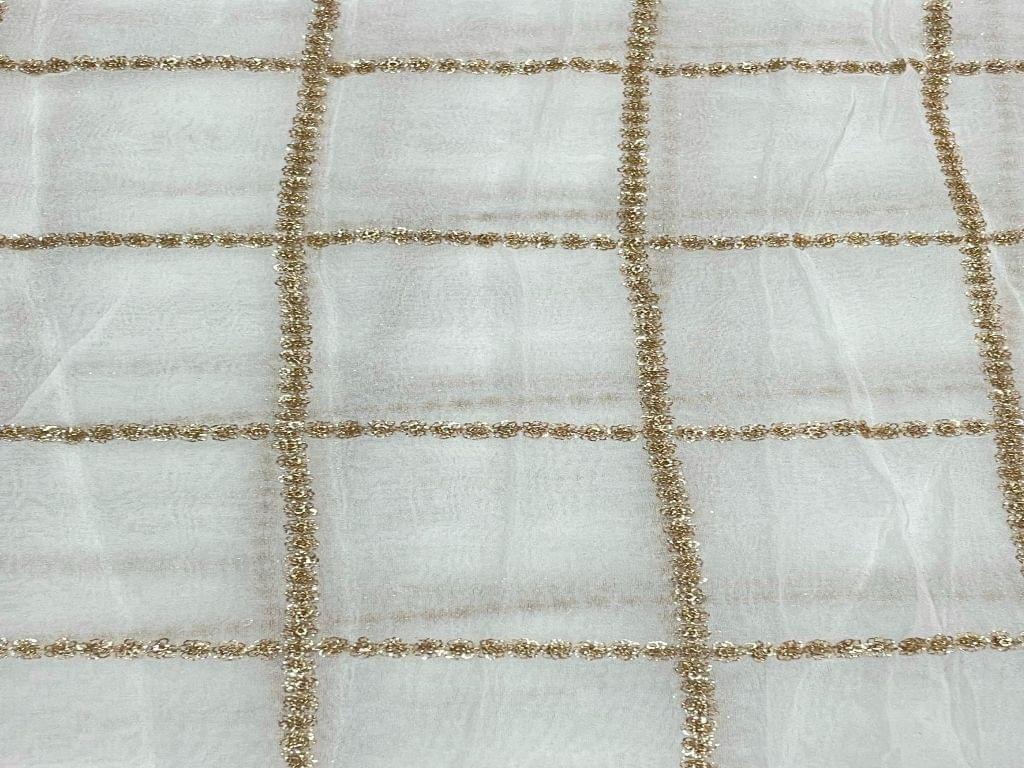 Dyeable Embroidered Georgette White Golden Box Checks Width 44 Inch / 112 Cm SKU:K1439