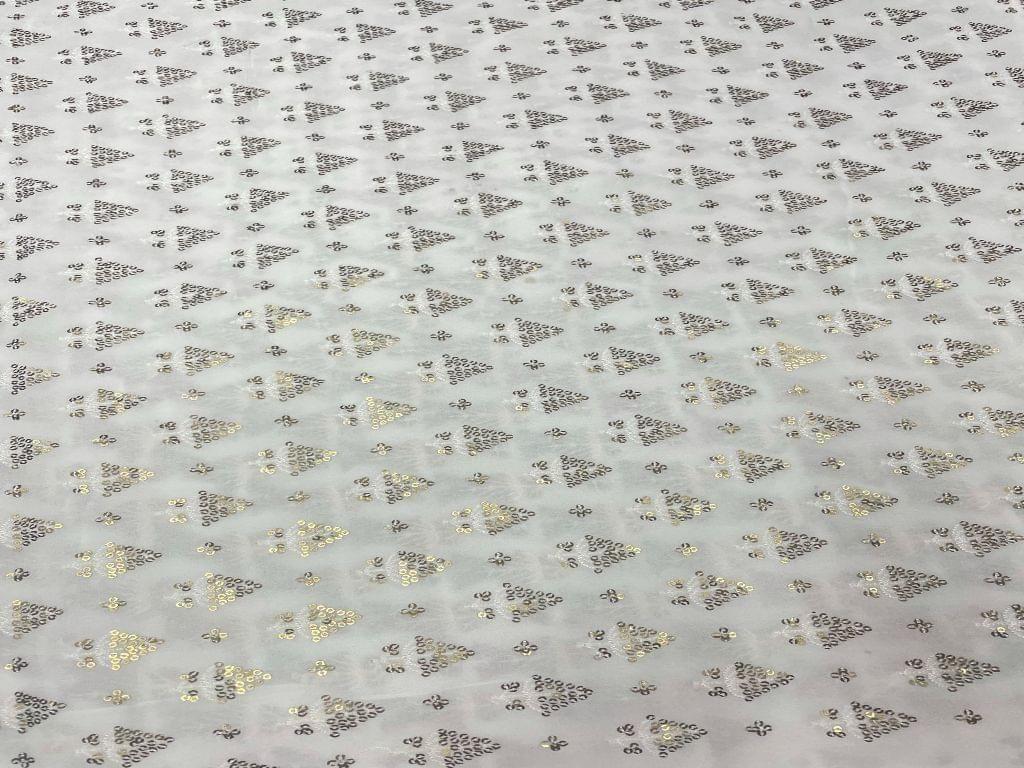 Dyeable Embroidered Georgette White Golden Trees Width 44 Inch / 112 Cm SKU:K1493