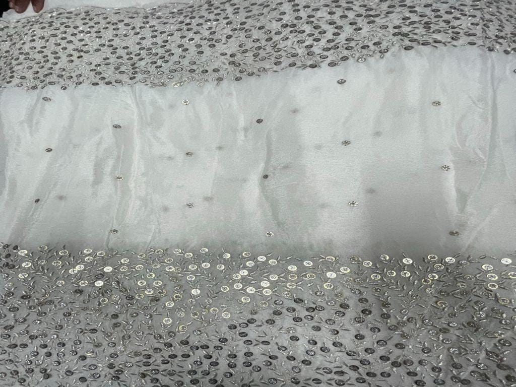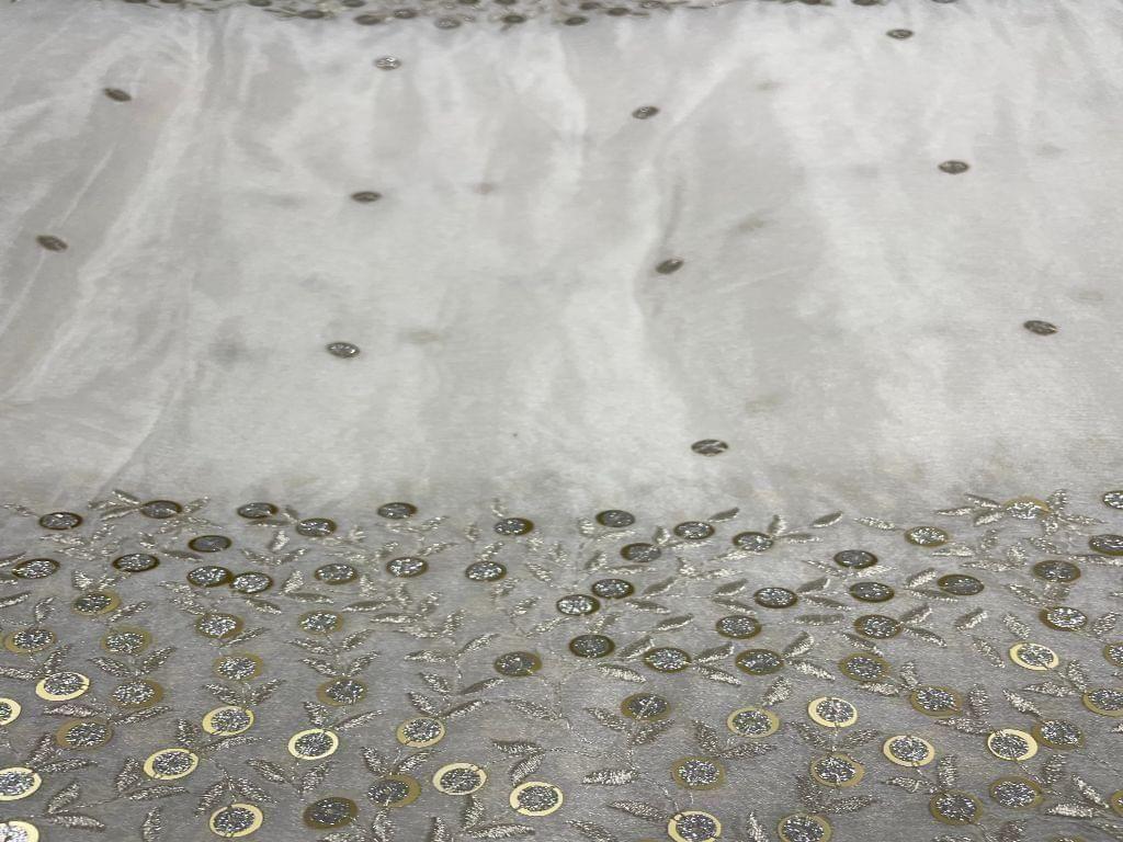 Dyeable Embroidered Georgette White Grey Floral Borders Width 44 Inch / 112 Cm SKU:K1634