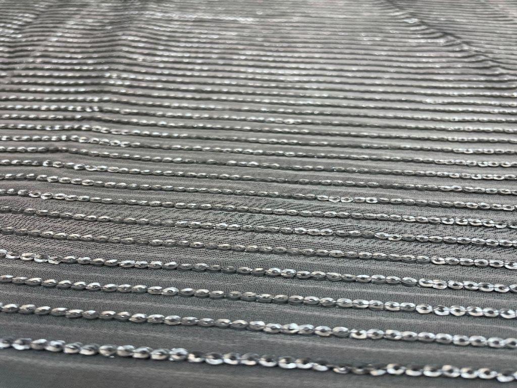 Dyeable Embroidered Georgette White Grey Stripes Width 44 Inch / 112 Cm SKU:K1537