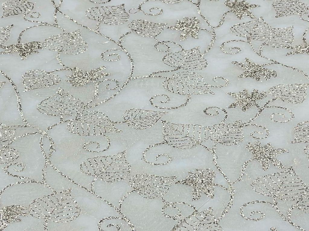 Dyeable Embroidered Georgette White Silver Floral 1 Width 44 Inch / 112 Cm SKU:K1520