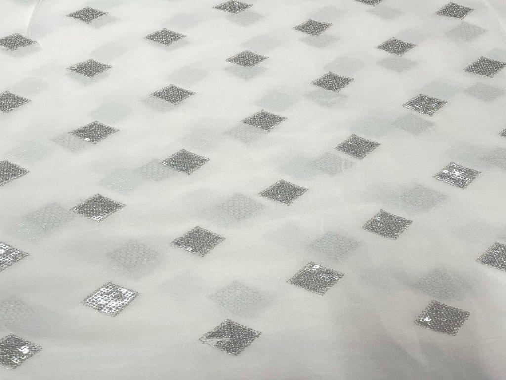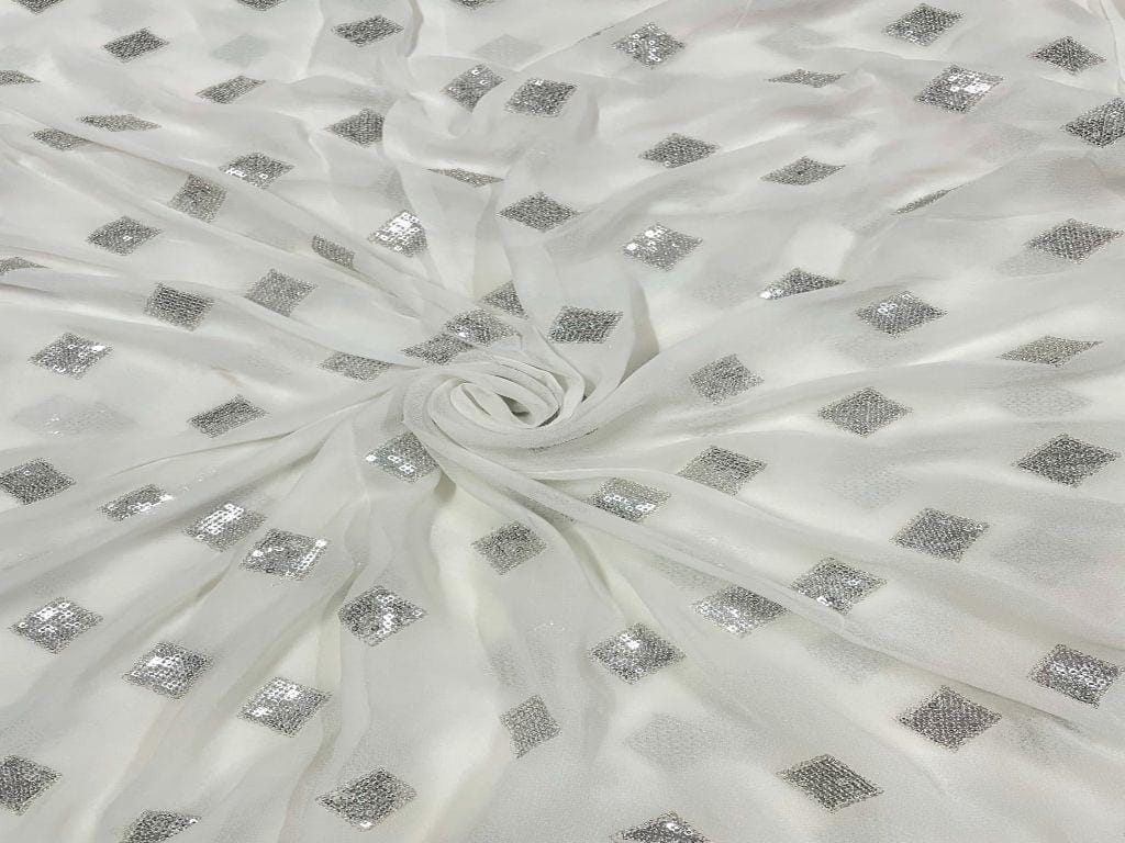 Dyeable Embroidered Georgette White Silver Geometric Width 44 Inch / 112 Cm SKU:K1510