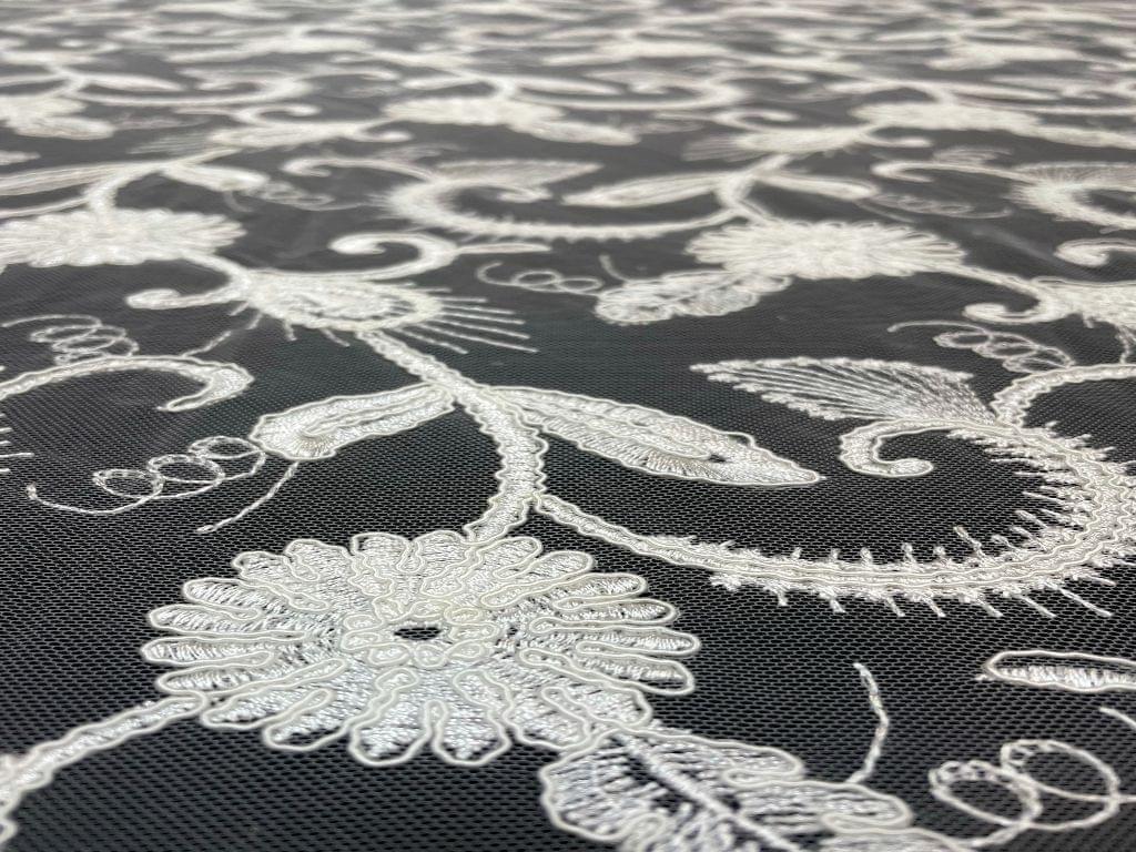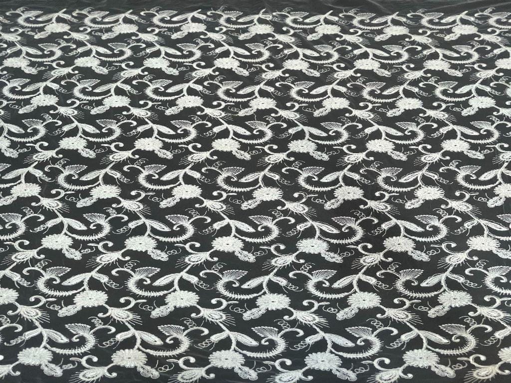 Dyeable Embroidered Net White Floral 4 Width 44 Inch / 112 Cm SKU:K1596