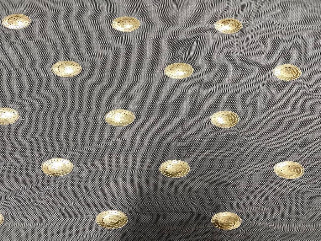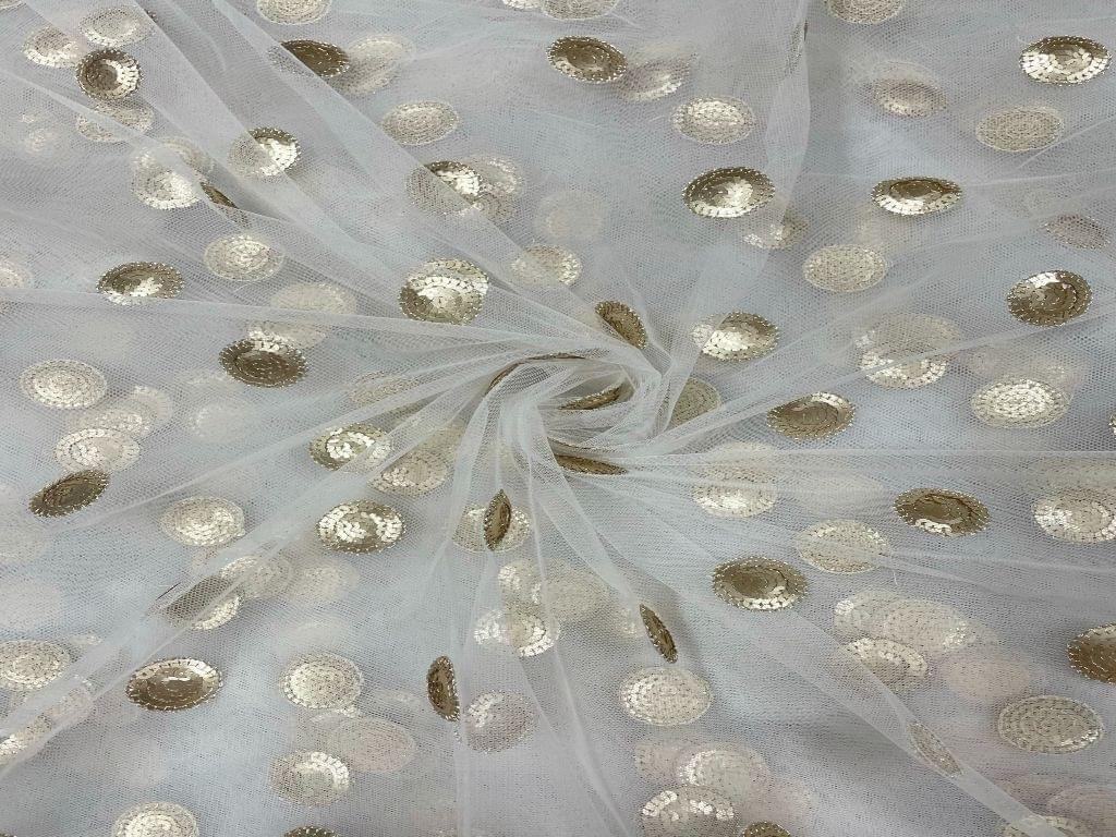 Dyeable Embroidered Net White Golden Circles 1 Width 44 Inch / 112 Cm SKU:K1611