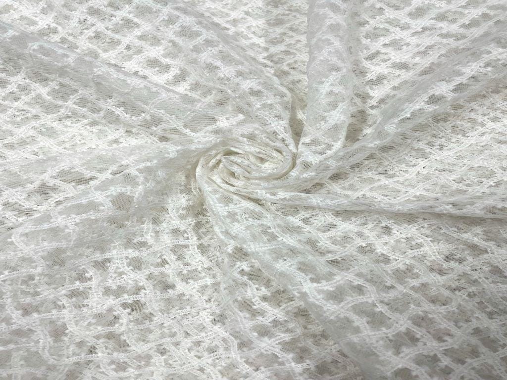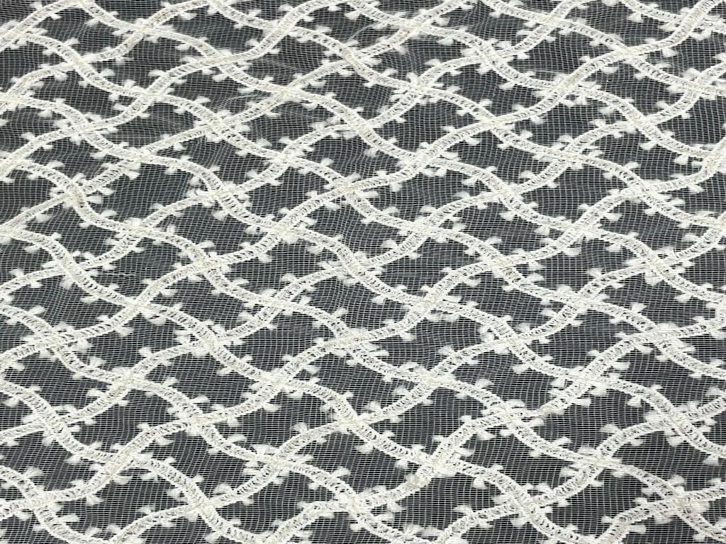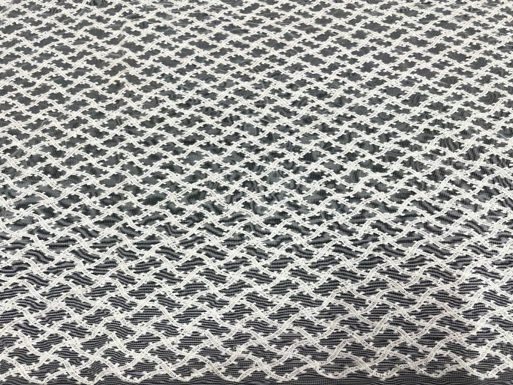 Dyeable Embroidered Net White Wavy Checks Width 44 Inch / 112 Cm SKU:K1609