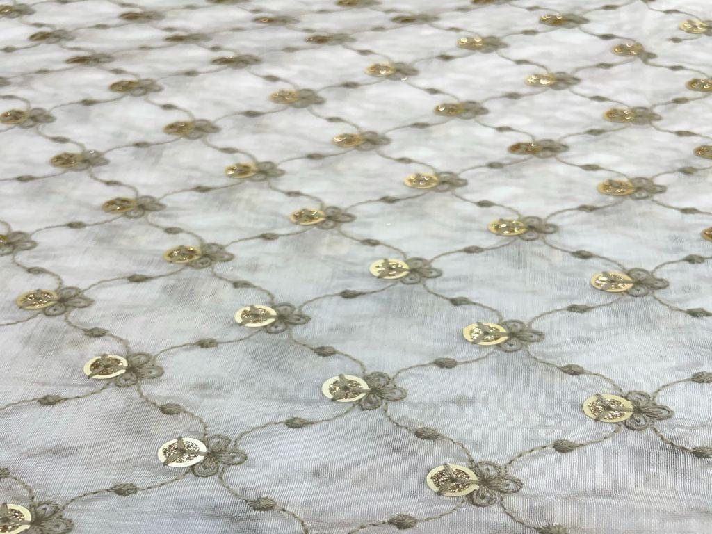 Dyeable Embroidered Pure Chanderi Silk White Abstract Width 44 Inch / 112 Cm SKU:K1392