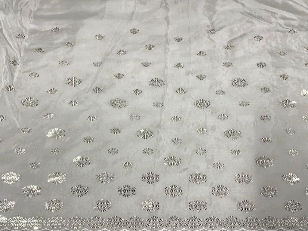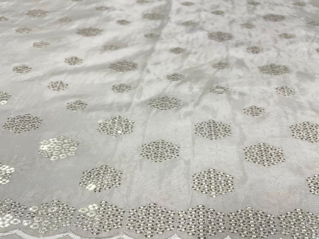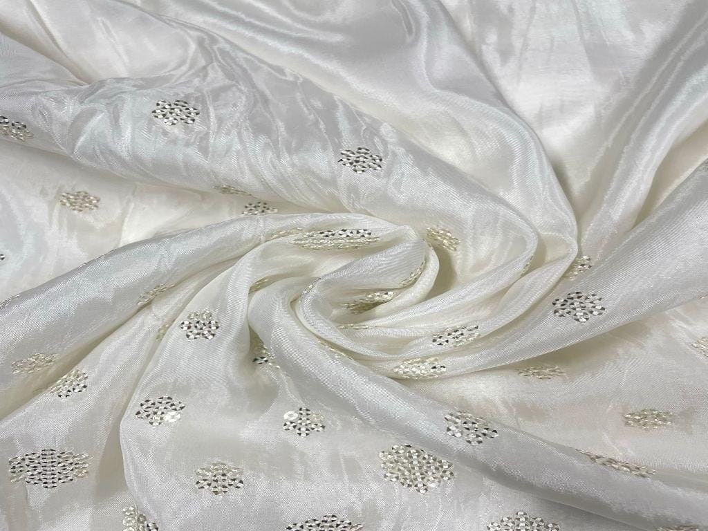 Dyeable Embroidered Uppada Silk White Silver Geometric Motifs Width 44 Inch / 112 Cm SKU:K1654