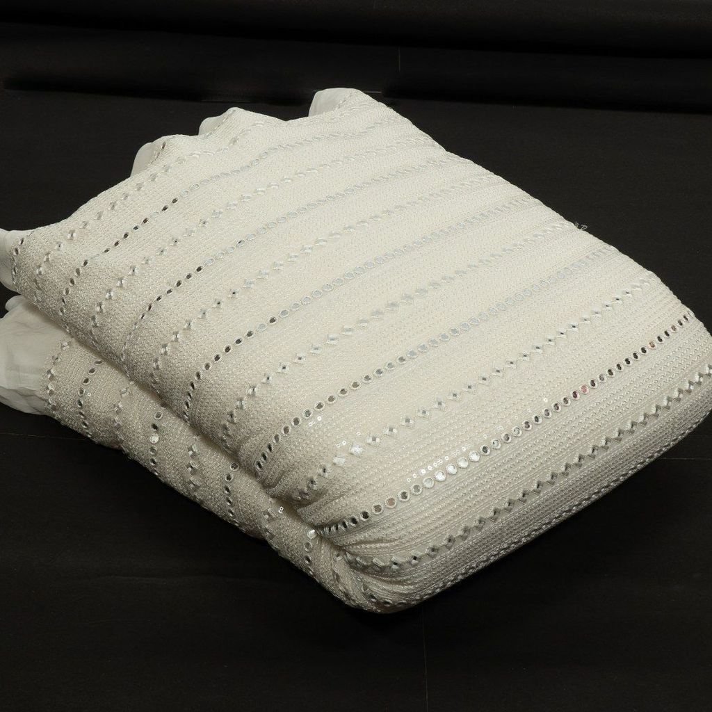 Dyeable georgette embroidered fabric melds sheer elegance with customizable flair. The lightweight georgette base provides a graceful drape, while intricate embroidery adds texture and sophistication. With its dyeable quality, it offers endless opportunities for personalized creations, making it ideal for luxurious garments, chic accessories, or refined home decor pieces.SKU: 100241203 D.No. 47219