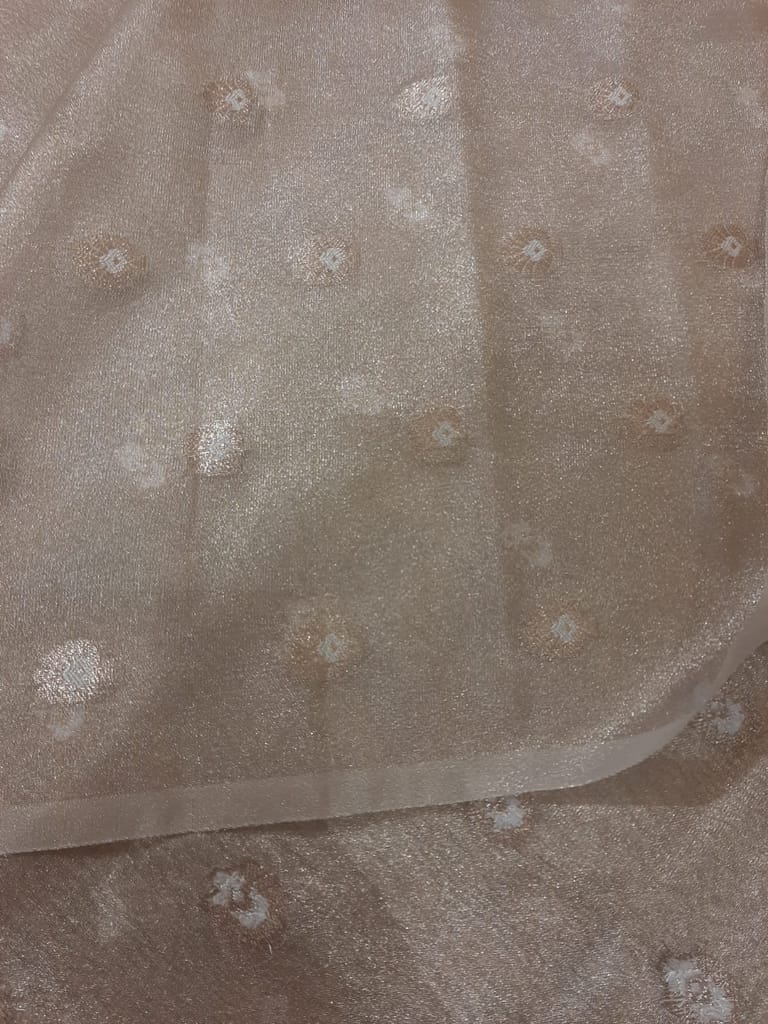 The fabric features a beautiful jacquard booti pattern woven all over, adding texture and sophistication. Its soft golden hue serves as a neutral base, making it perfect for dyeing in your desired colour to complement any outfit or theme.
