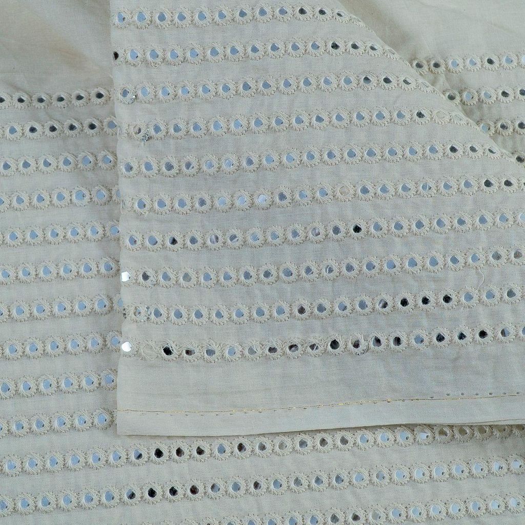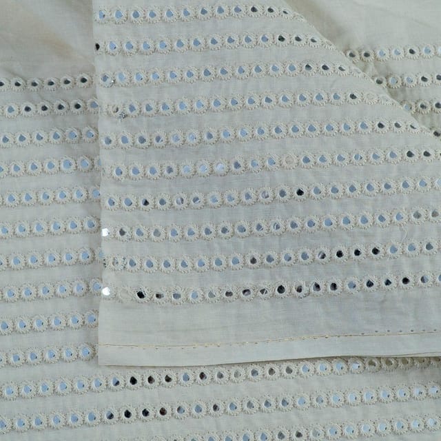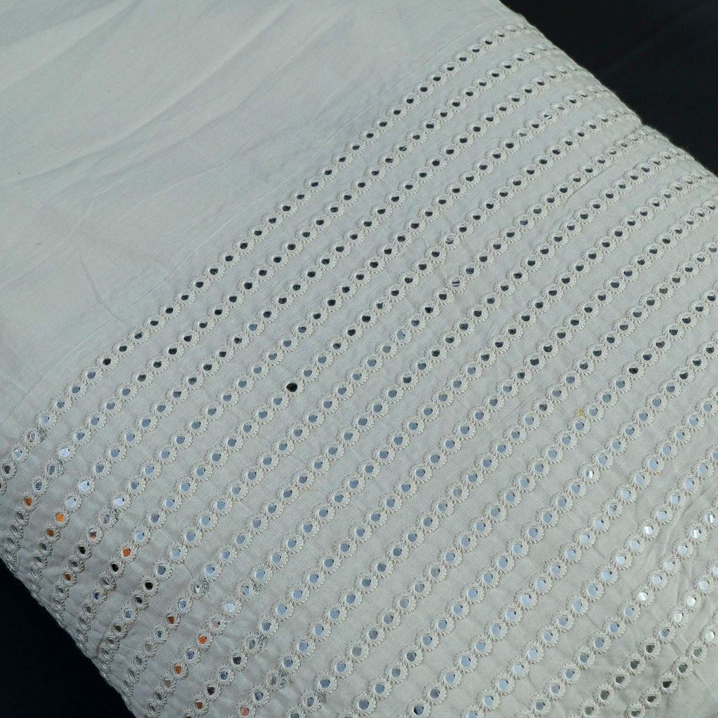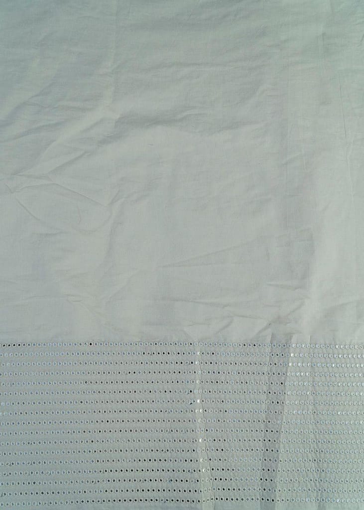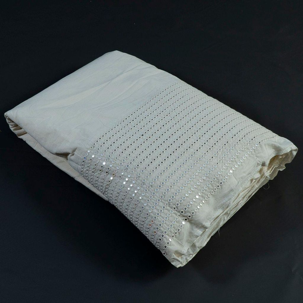 Kora cotton is an intricate type of cotton that is considered one of the most pioneering handloom fabrics. The raw feel of the fabric with Faux Mirror work has an alluring charm. The natural milky white shade provides an immense look to the material. Bring out the inner designer and create the most beautiful outfits with this lightweight rendition, on top of it its dyeable too. SKU:100222387