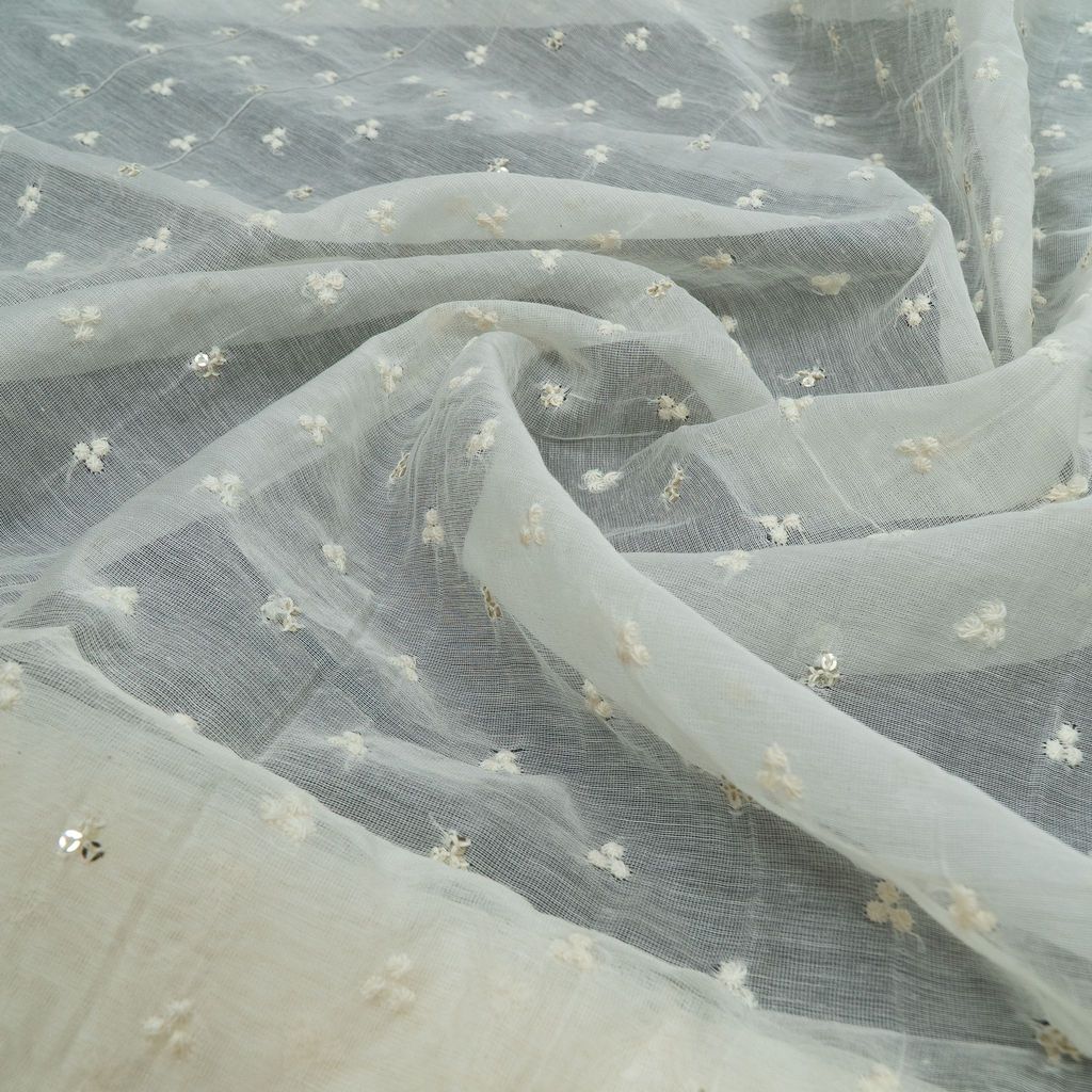 Discover the versatile elegance of our Dyeable Mal Chanderi Thread and Sequin Embroidery Booti Fabric. Beautifully adorned with delicate embroidered thread motifs and shimmering sequins, this fabric combines understated charm with customizable color options. Crafted from premium Mal Chanderi, known for its sheer luxury, fine texture, and graceful drape, it is lightweight and breathable, making it perfect for festive wear, bridal couture, and occasion attire. The subtle embroidered booti design enhances its elegance, while its dyeable quality allows you to match any desired palette or theme. Ideal for fashion designers, boutique collections, and personalized creations, this fabric offers endless styling opportunities.