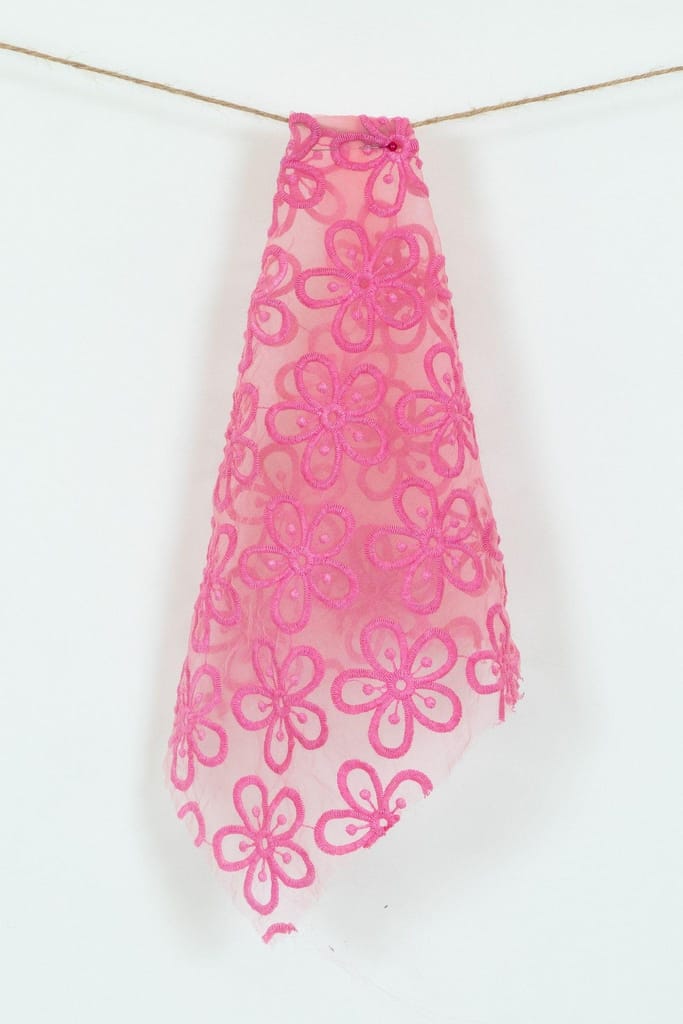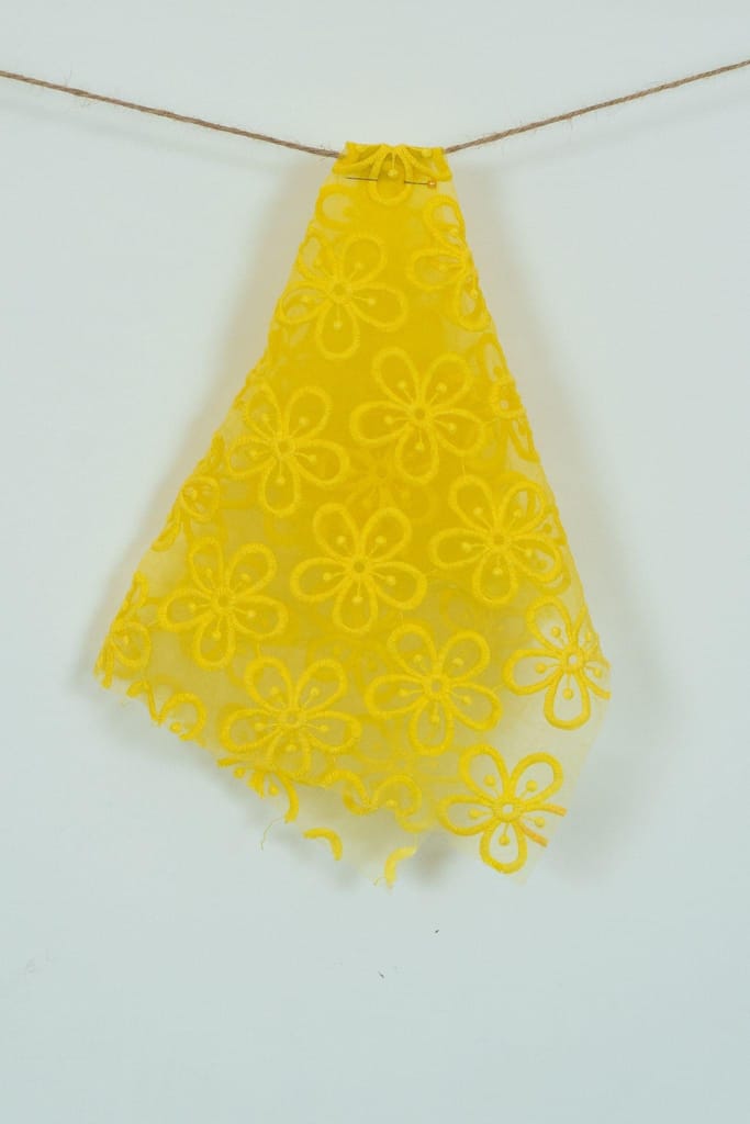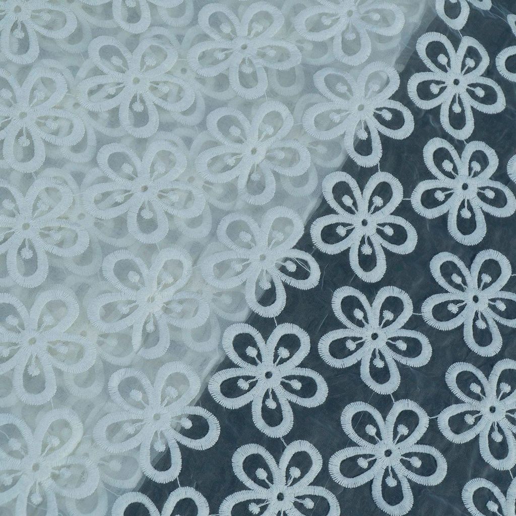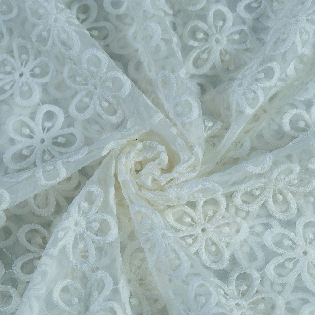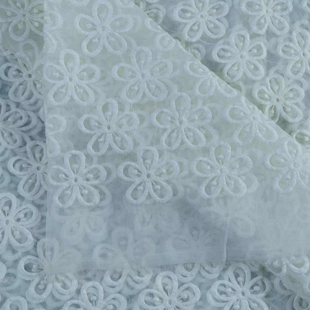 Dyeable Organza embroidered fabric with floral designs all over. SKU: 100222294