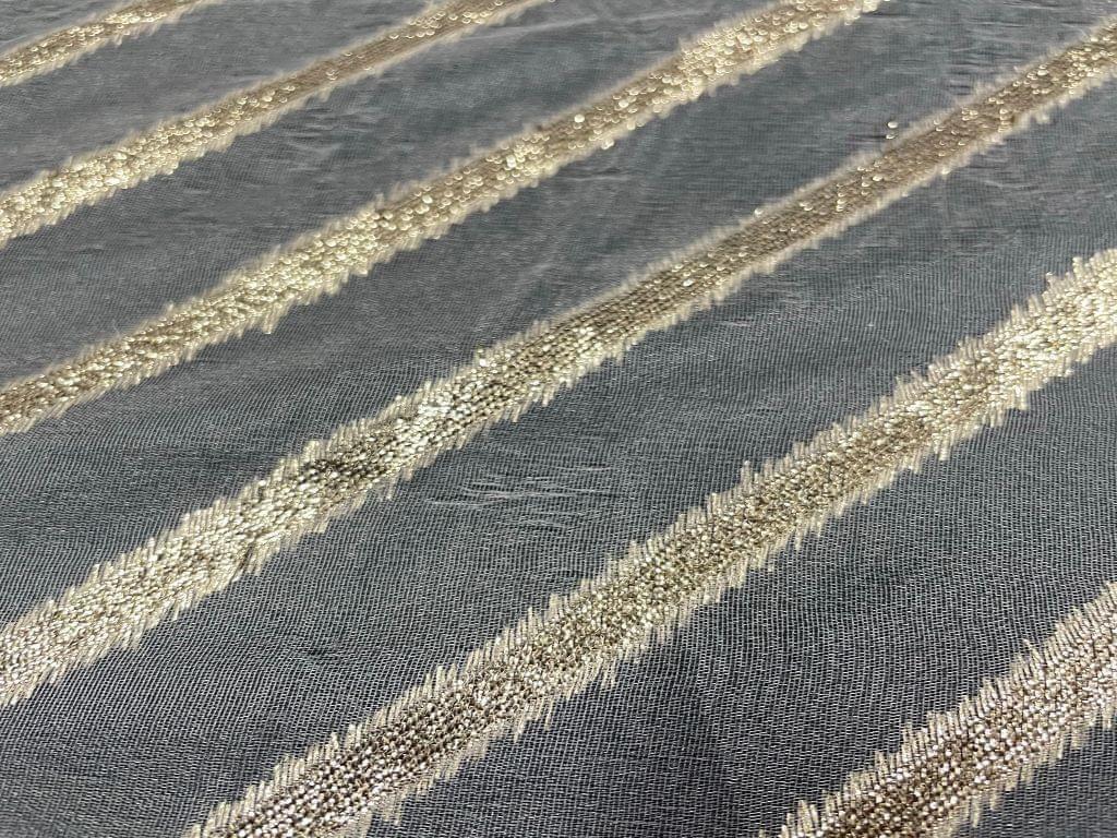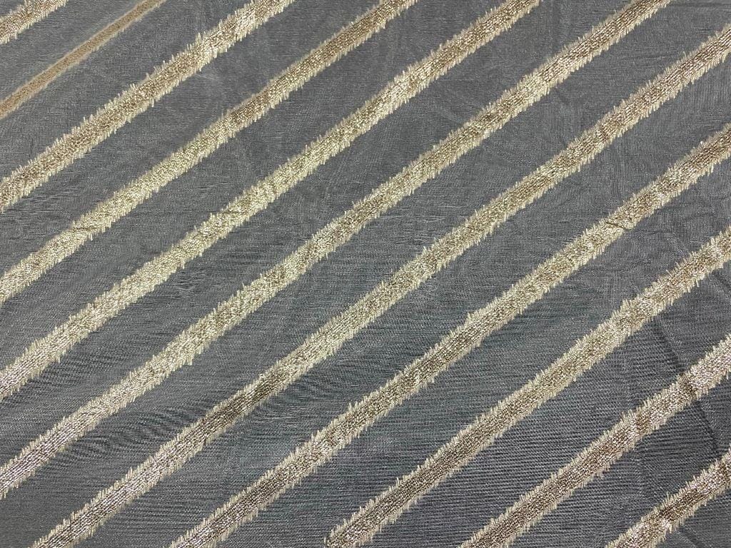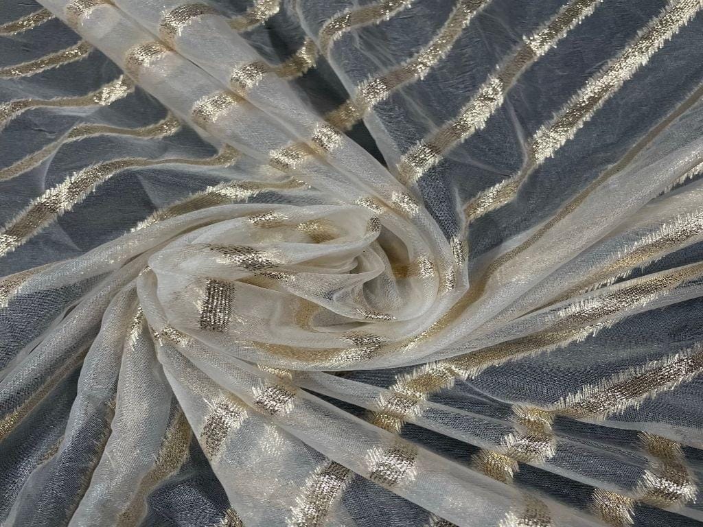 Dyeable Organza Zari White Golden Stripes Width 44 Inch / 112 Cm SKU:K2145