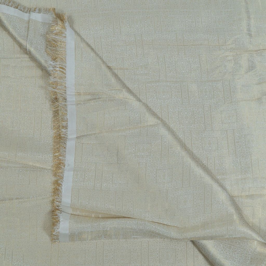 Woven with an intricate geometric jacquard pattern (as seen in the image), the design is integrated directly into the fabric, creating a textured and opulent look. The dyeable base provides the versatility to customize this masterpiece into any color, making it perfect for creating magnificent wedding attire, festive jackets, structured lehengas, or statement blouses that require a heavy, rich, and customizable fabric.