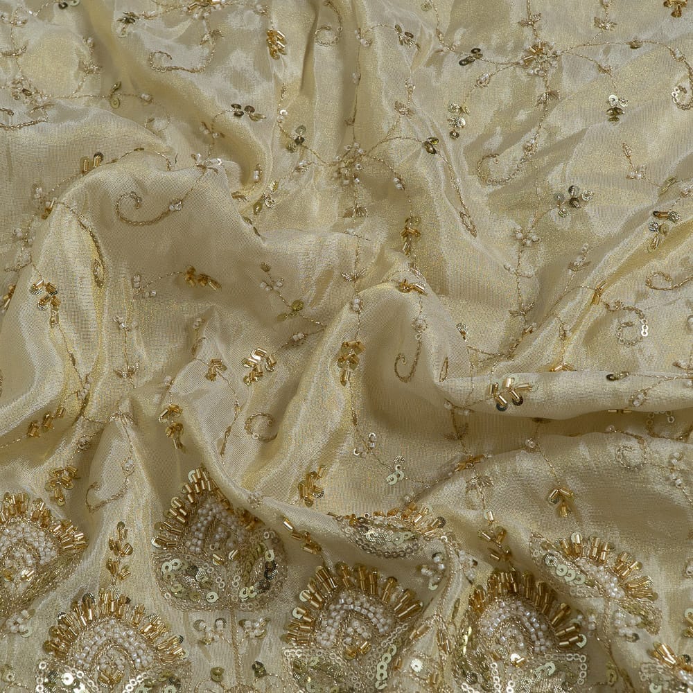 Tissue Embroidered Fabric with Beads & Sequins – Water Gold | Viscose Base & Dyeable