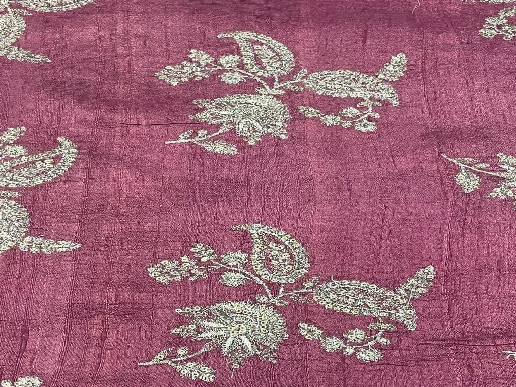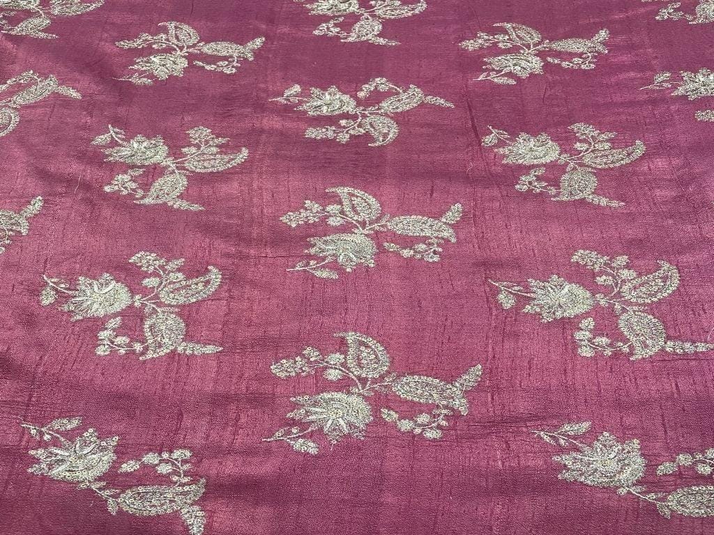 Dyed Embroidered Pure Raw Silk Rouge Golden Floral WidthInch / 112 Cm SKU:K3312