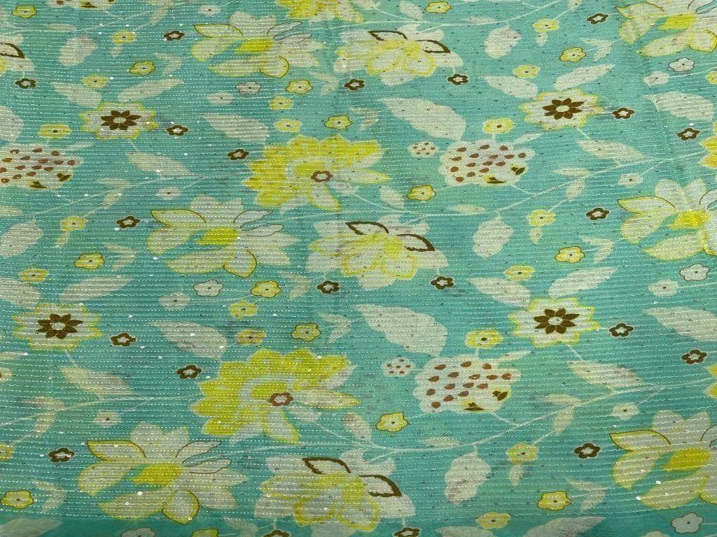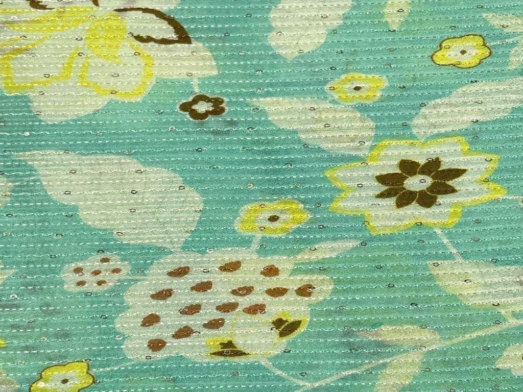 Embroidered Chiffon Bright Sea Green Floral Width 44 Inch / 112 Cm SKU:K1347