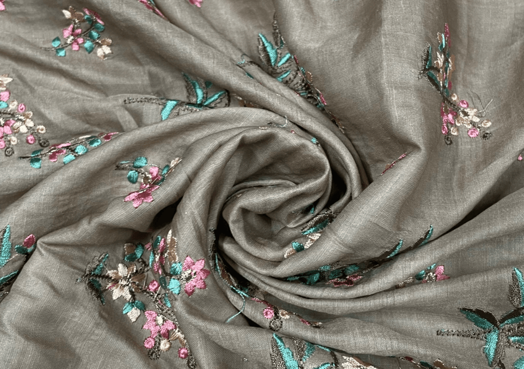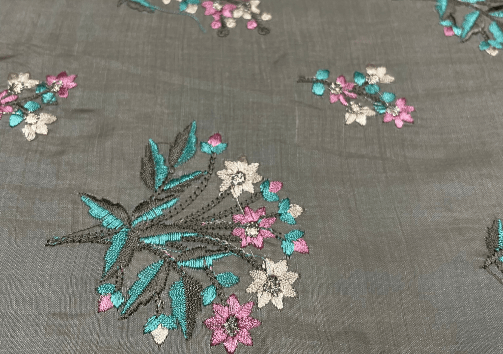 | Fabric Name | Embroidered Cotton Satin Brown Flowers |