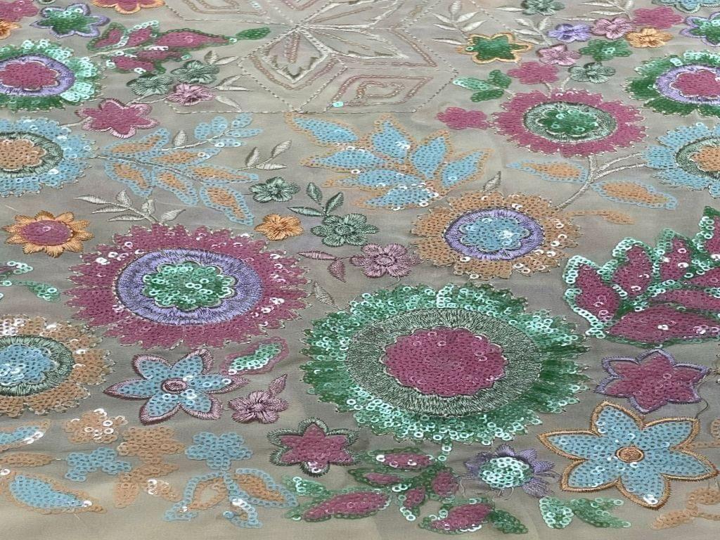 Embroidered Georgette Beige Multicolour Floral Width 60 Inch / 152 Cm SKU:K3415