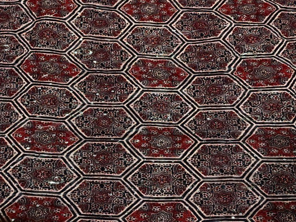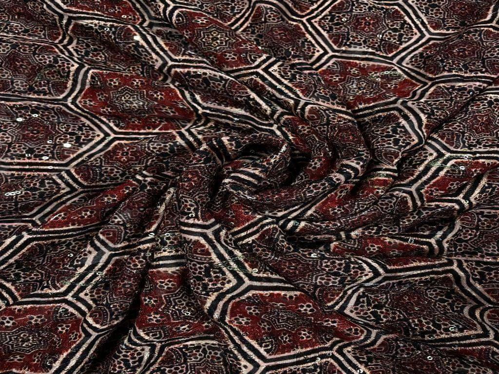 Embroidered Georgette Maroon Geometric Width 44 Inch / 112 Cm SKU:K1379
