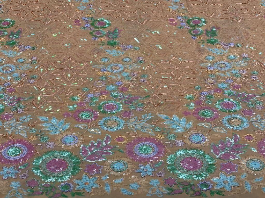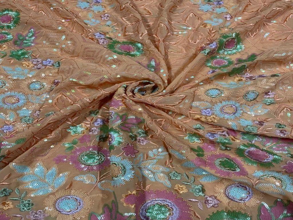Embroidered Georgette Peach Multicolour Floral Width 60 Inch / 152 Cm SKU:K3417