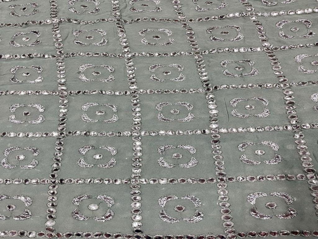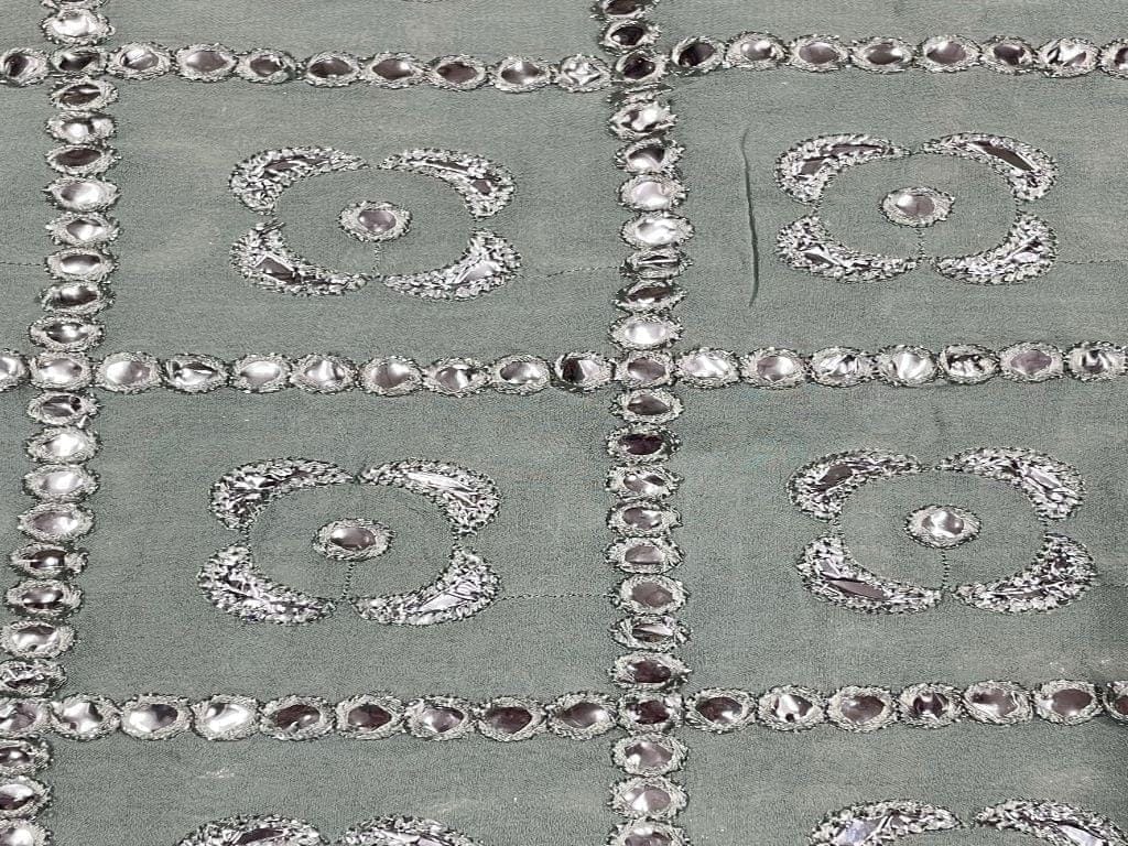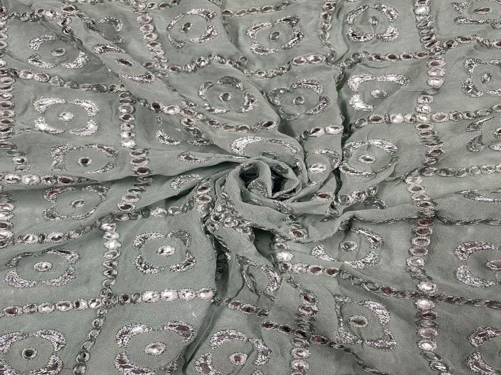 Embroidered Georgette Sea Green Silver Geometric Width 56 Inch / 142 Cm SKU: K3210