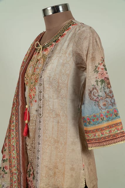 | Fabric Name | Fawn Color Chanderi Print with Embroidered Shirt with Bottom and Chanderi Printed Dupatta |