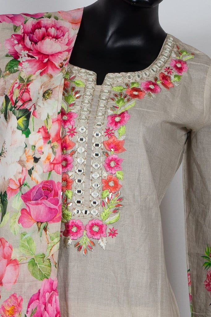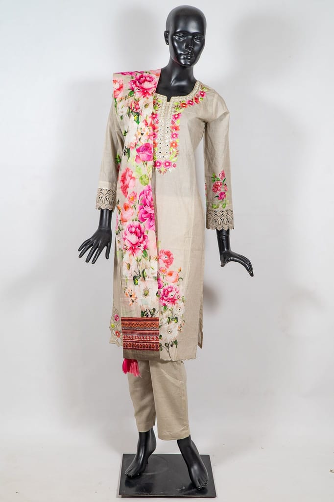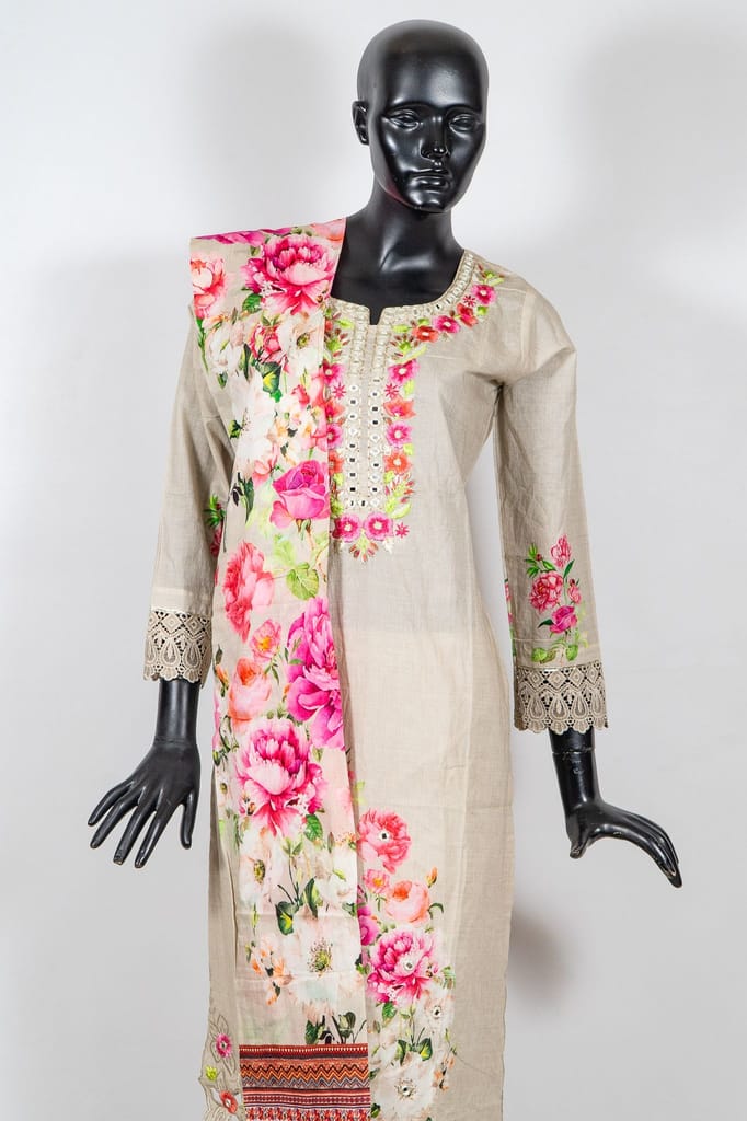 | Fabric Name | Fawn Color Cotton Print with Embroidered Shirt with Cotton Flex Pant and Cotton Printed Dupatta |