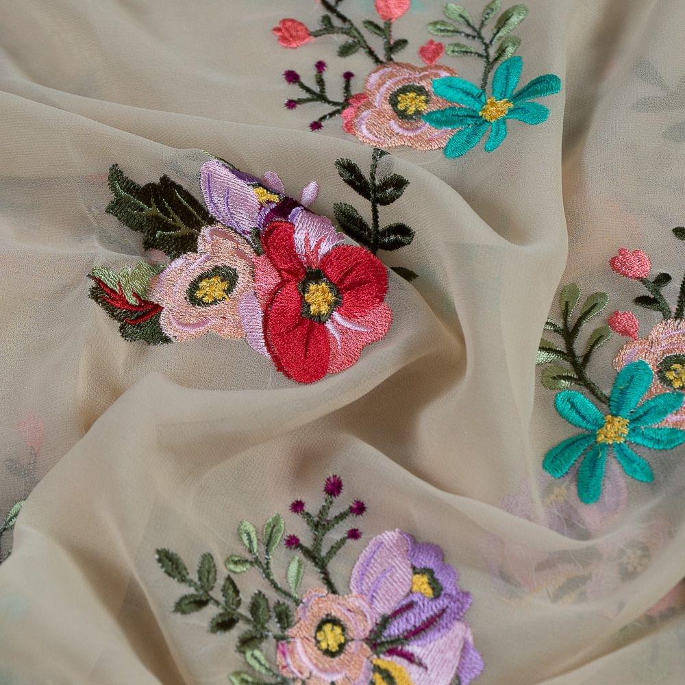 | Fabric Name | Fawn Color Georgette Thread Embroidery |