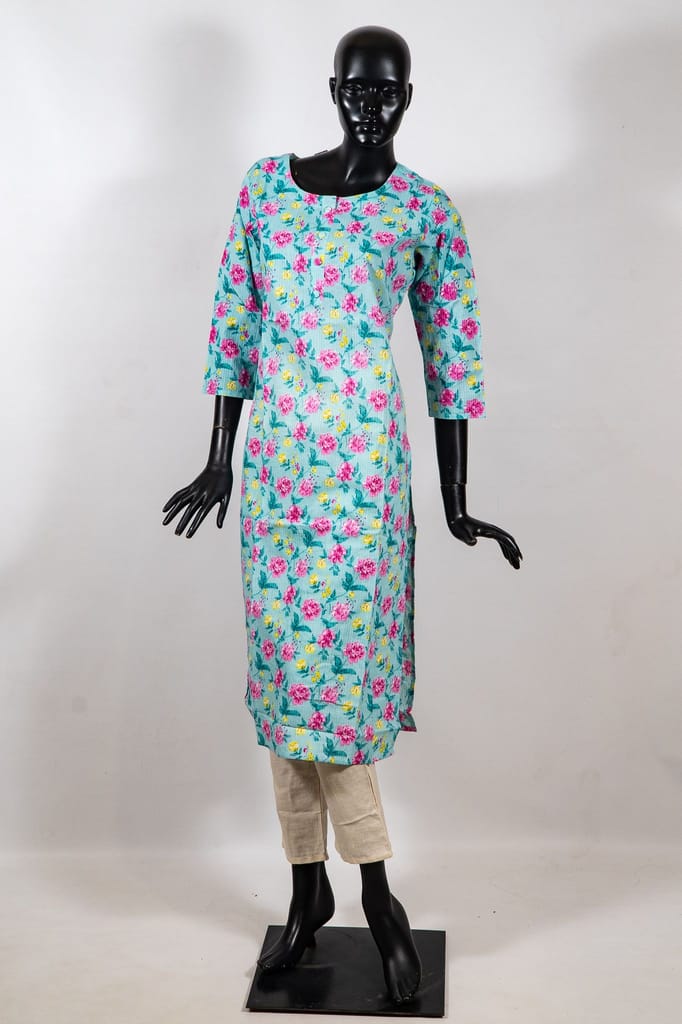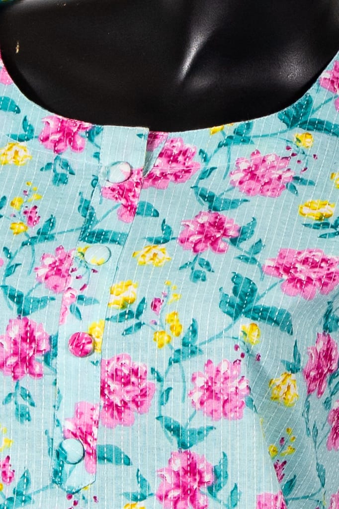Firozi Cotton Printed Kurti – Floral Elegance in Simplicity