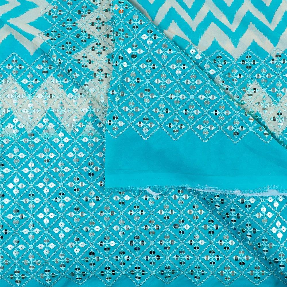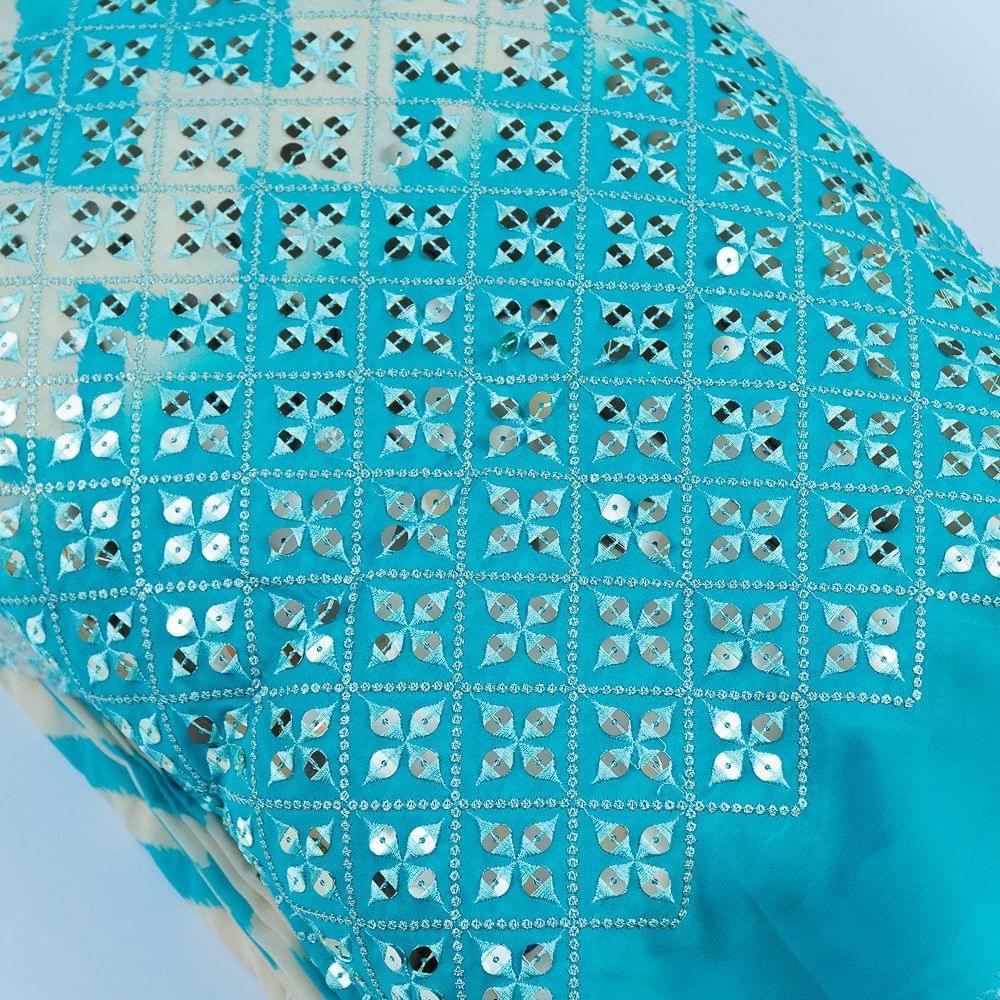 | Fabric Name | Firozi Color Georgette Sequins Embroidery With Digital Print |