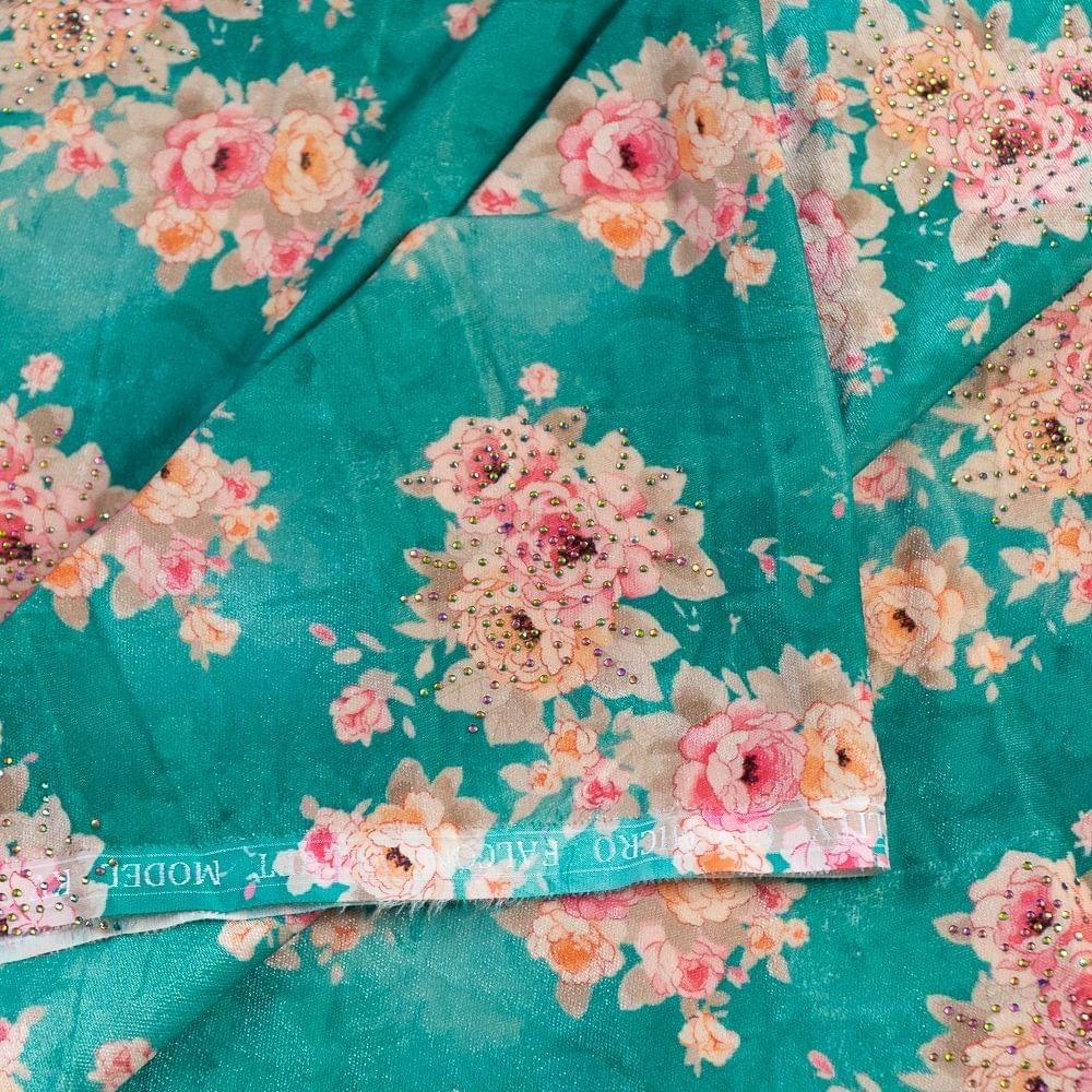 | Fabric Name | Firozi Color Velvet Print with Multi Color Saroaski Embroidery |