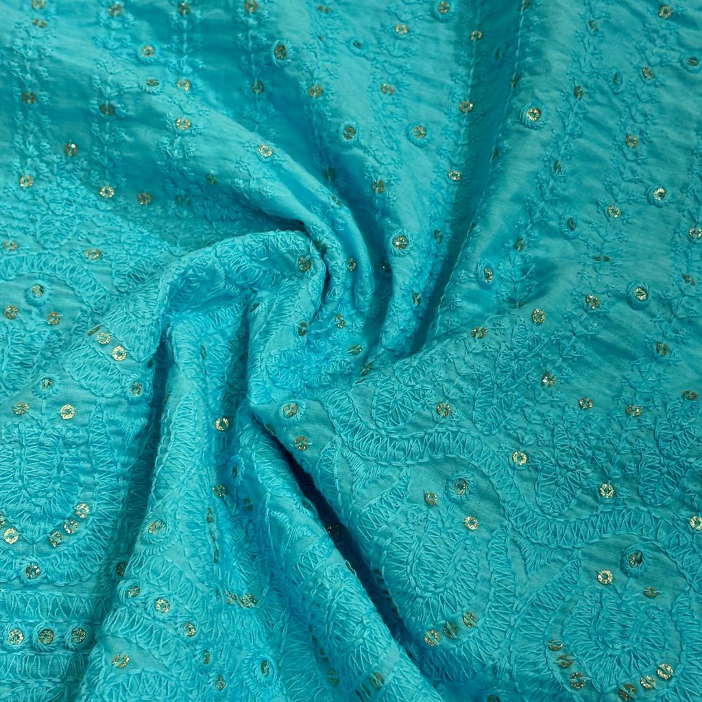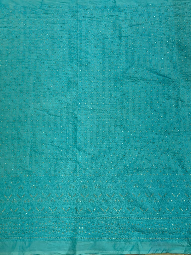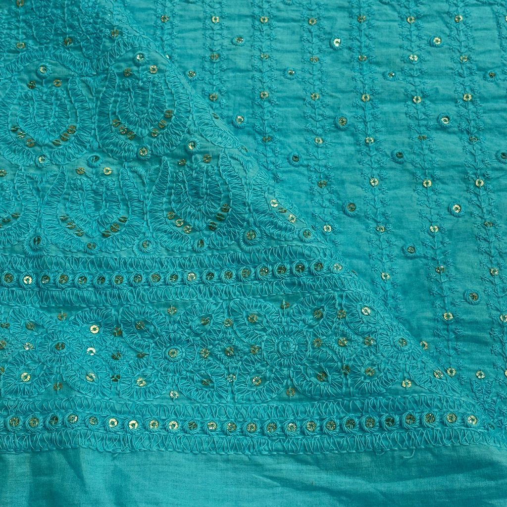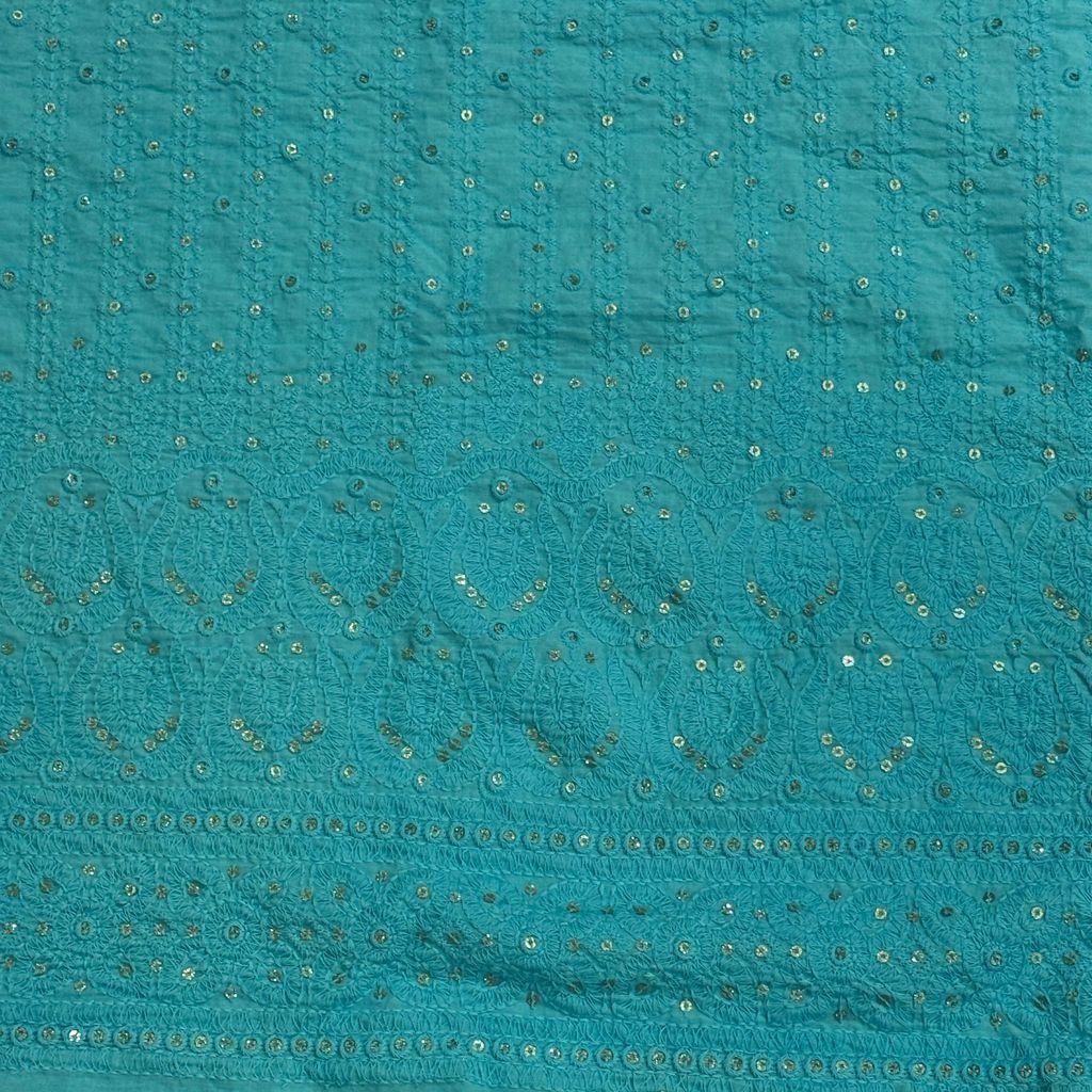 This fabric is from FabCouture Firozi Colour Cotton Embroidery Collection. The base is soft, flowy, cool and breathable cotton which is dyeable as well. The embroidery style is lakhnawi which gives it a rich taste and style. SKU: 100212895 COTTON LAKHNAVI D.NO 63 Shade No - 71 L