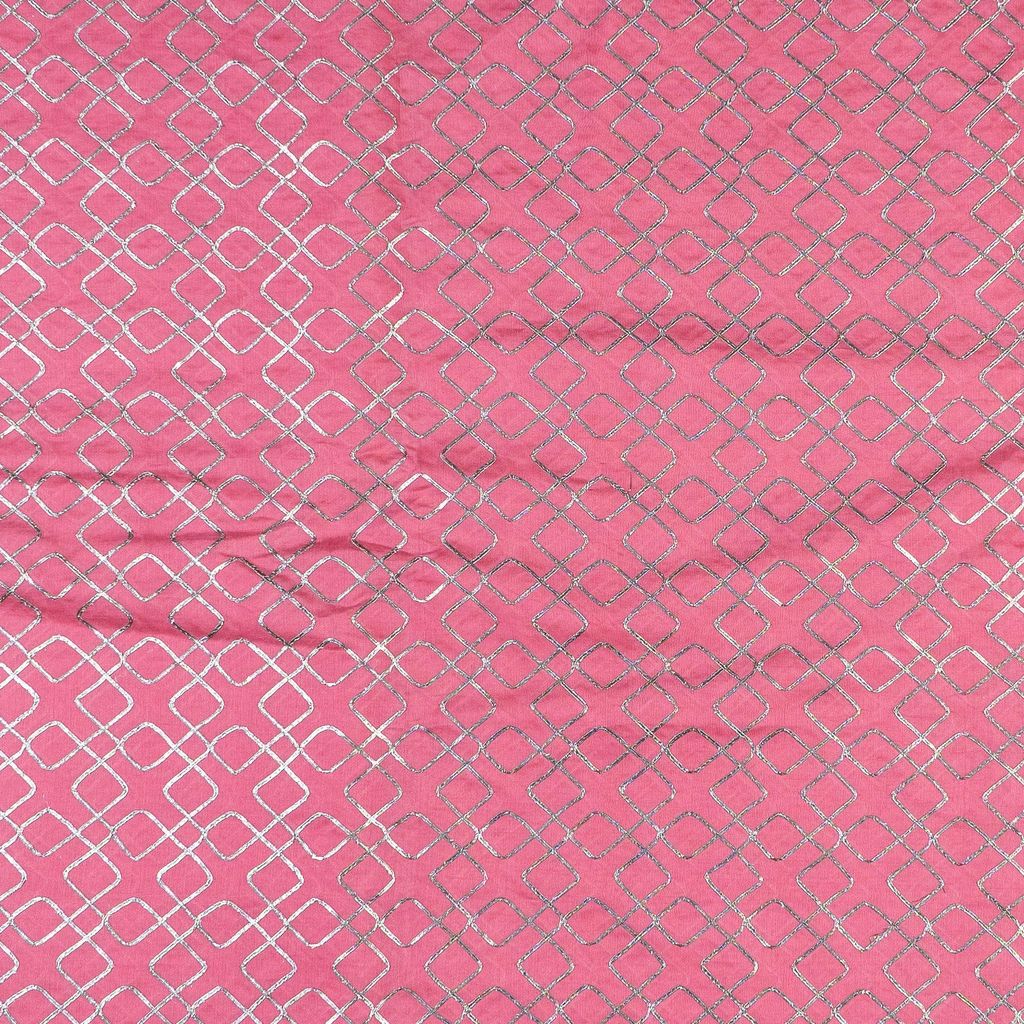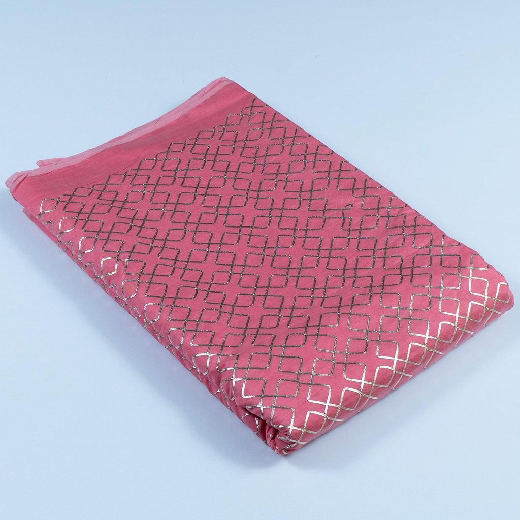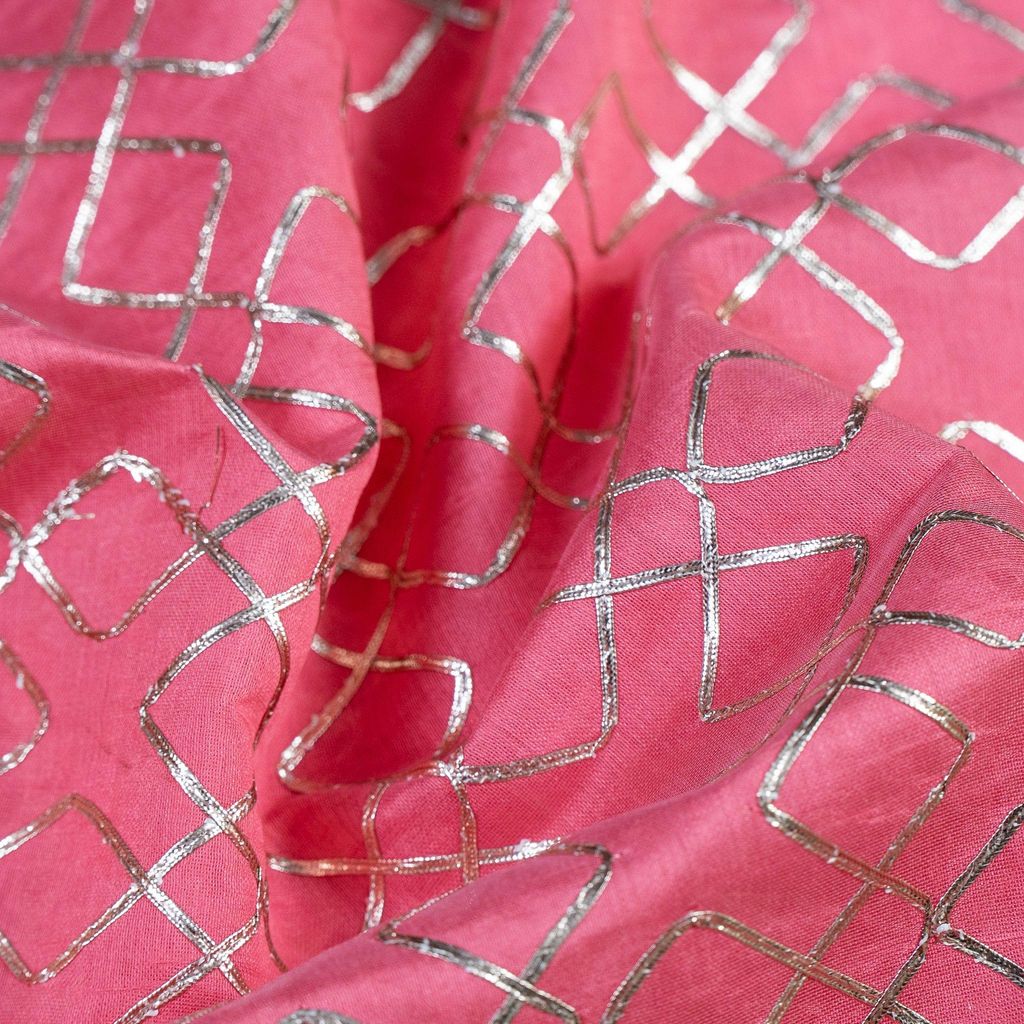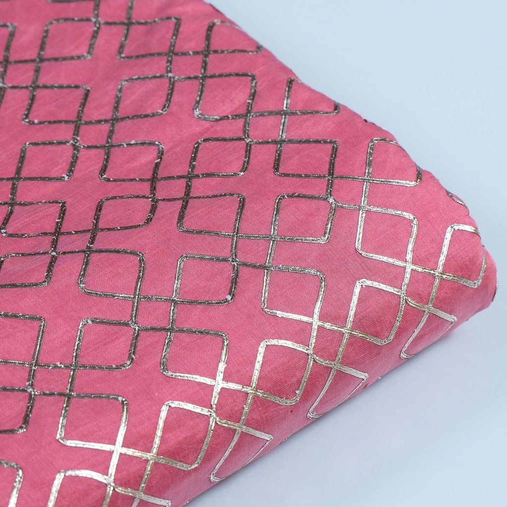 Gajree Chanderi Embroidery Fabric With Golden Gota honey comb Patern, Can Used for making lehengas-choli, shirts, salwar-kameez, Tops, this fabric is fabulous for all. SKU:1002267