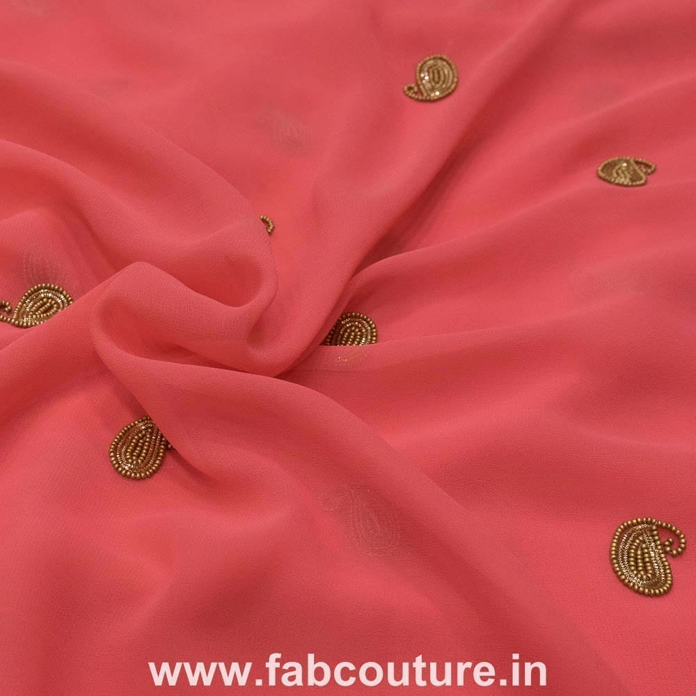 Gajri colour marina satin with hand embroidery on it, SKU:1018092102