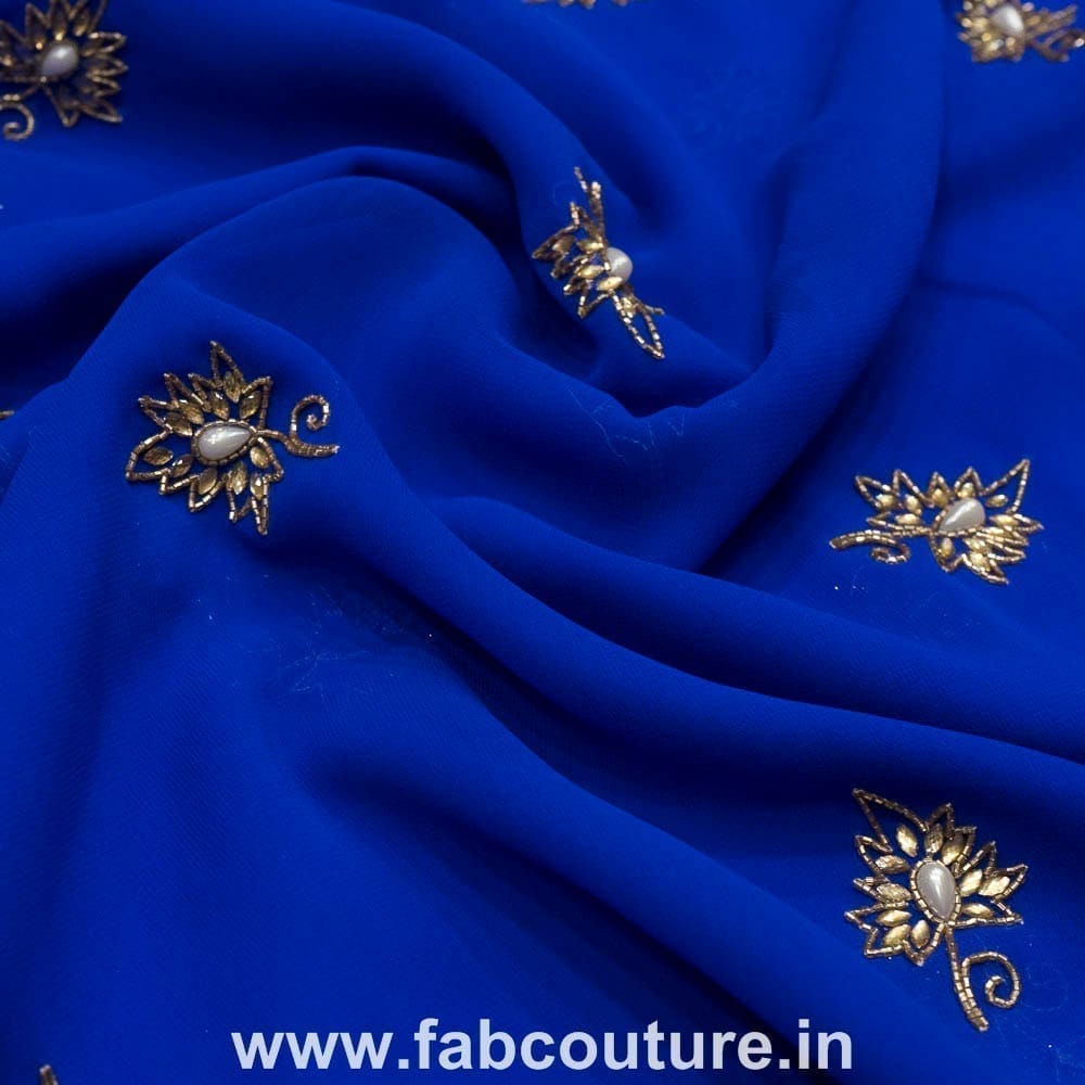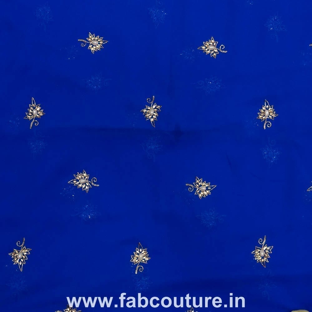 Royal blue colour georgette with hand embroidery on it, SKU:1018092104