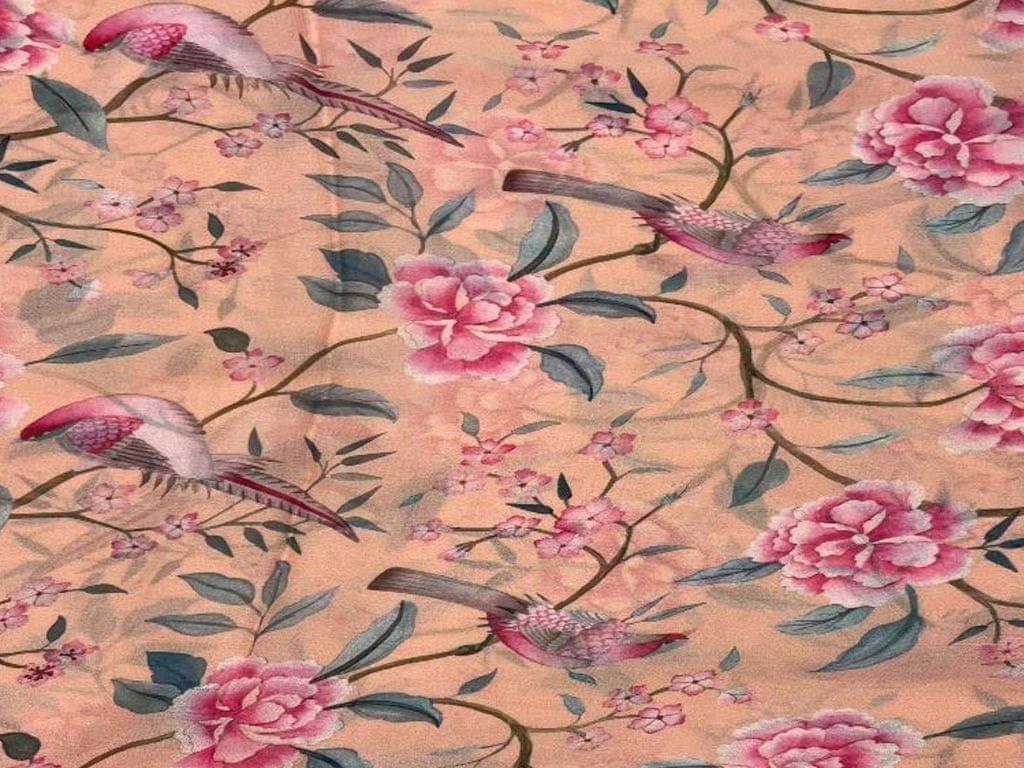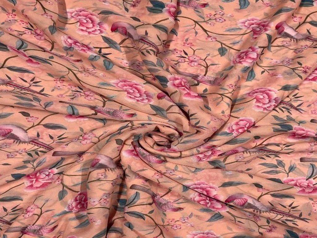 Georgette Peach Floral Width 56 Inch / 142 Cm SKU:K2662