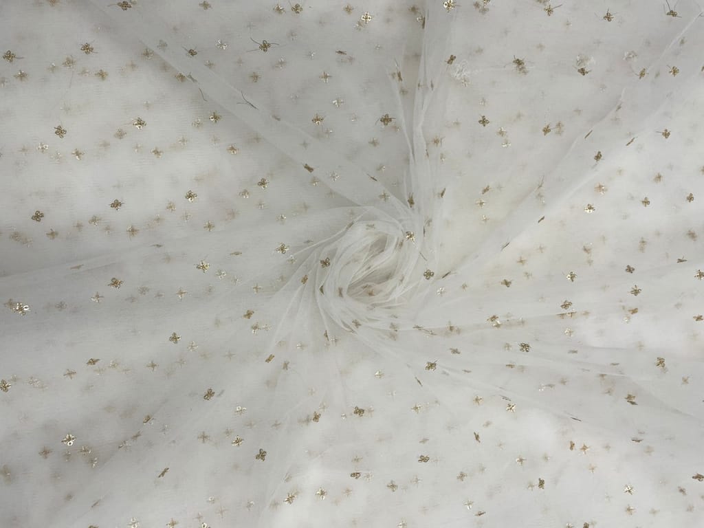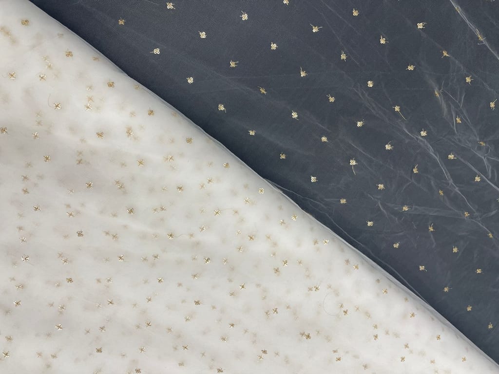| Fabric Name | Gold Dyeable Butti Embroidered Net Fabric |