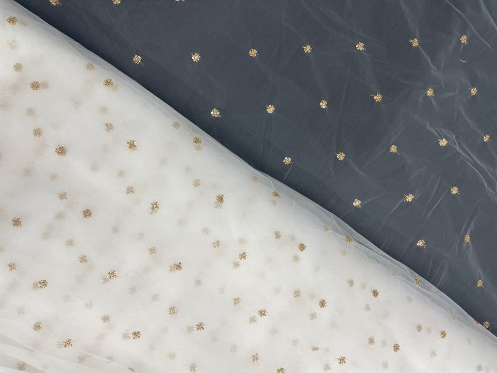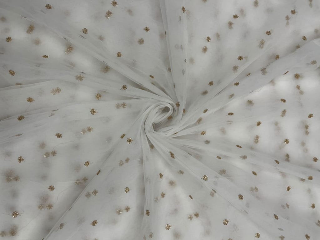 | Fabric Name | Gold Dyeable Butti Embroidered Net Fabric |