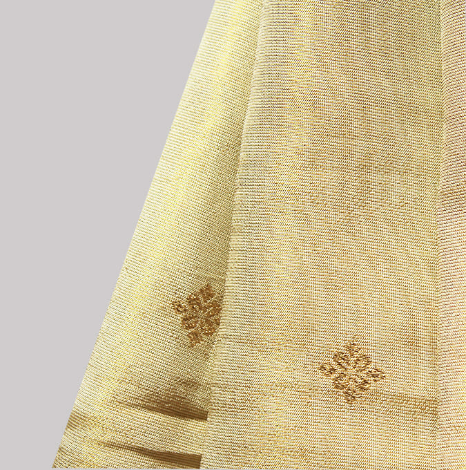 | Fabric Name | Golden Beige Gold Zari Floral Butti Dyeable Unstitched Fabric |