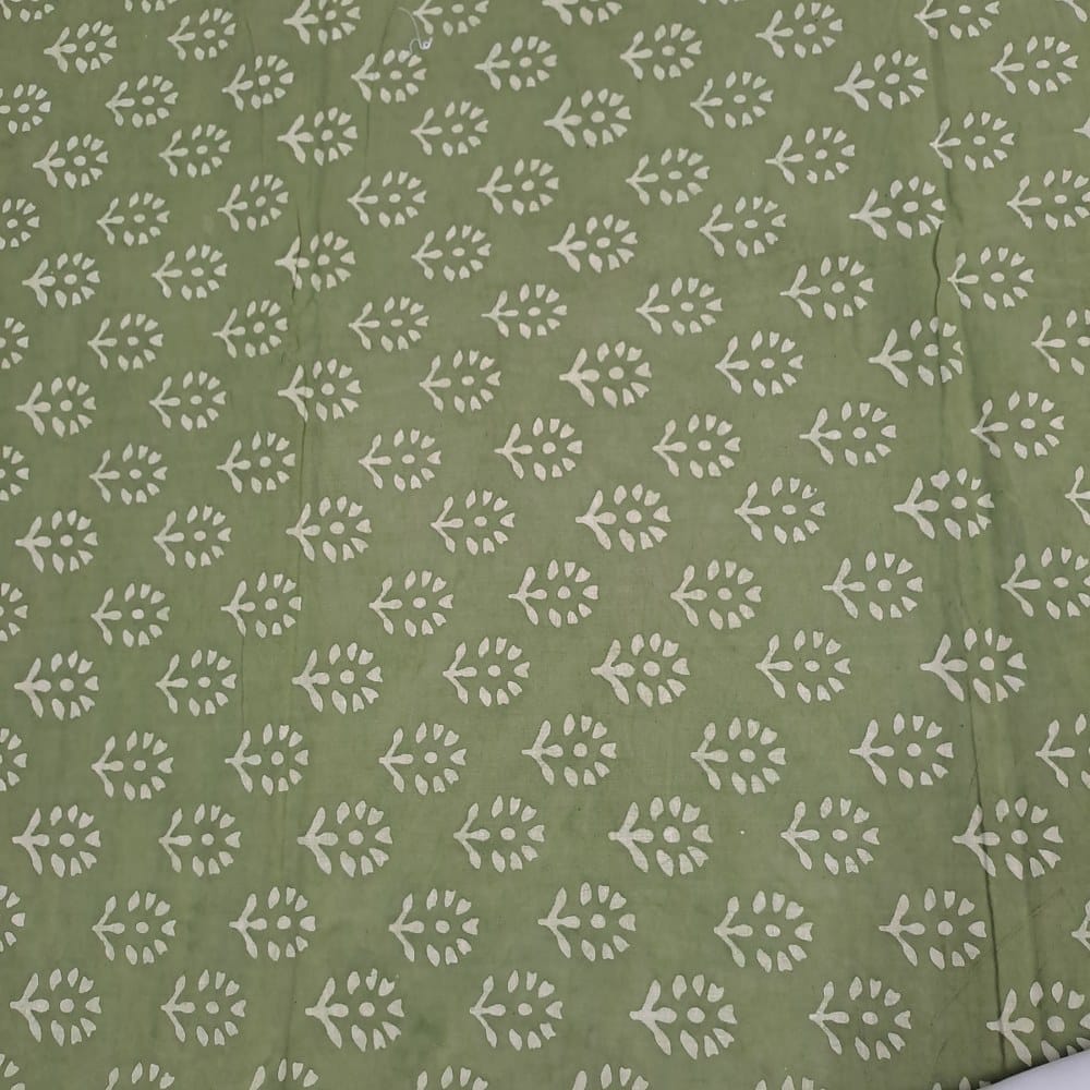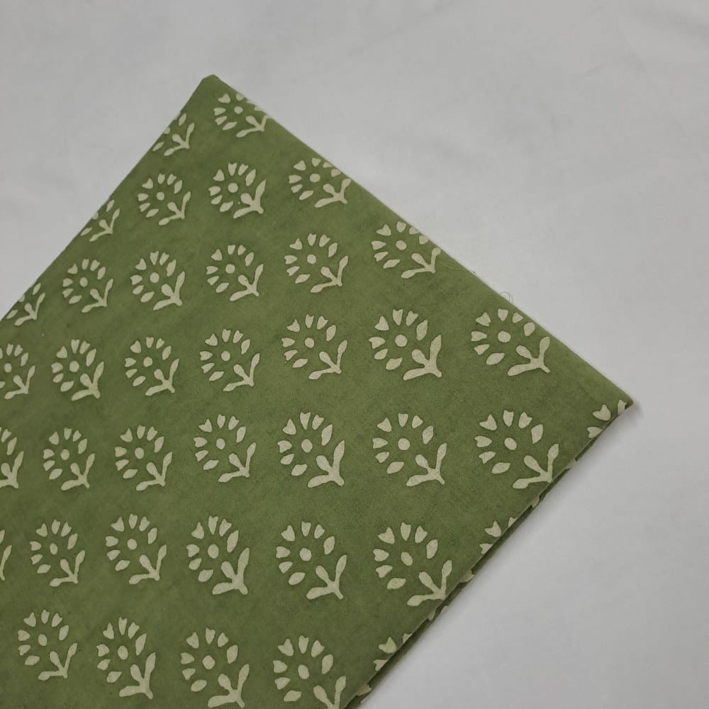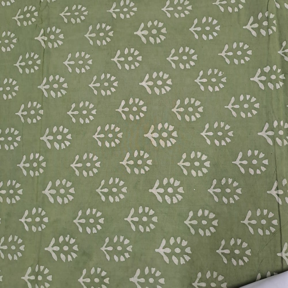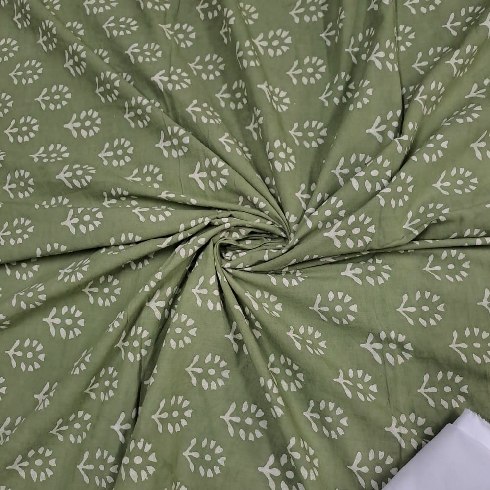 | Fabric Name | Green Color Cambric Cotton Dabu Printed Fabric |