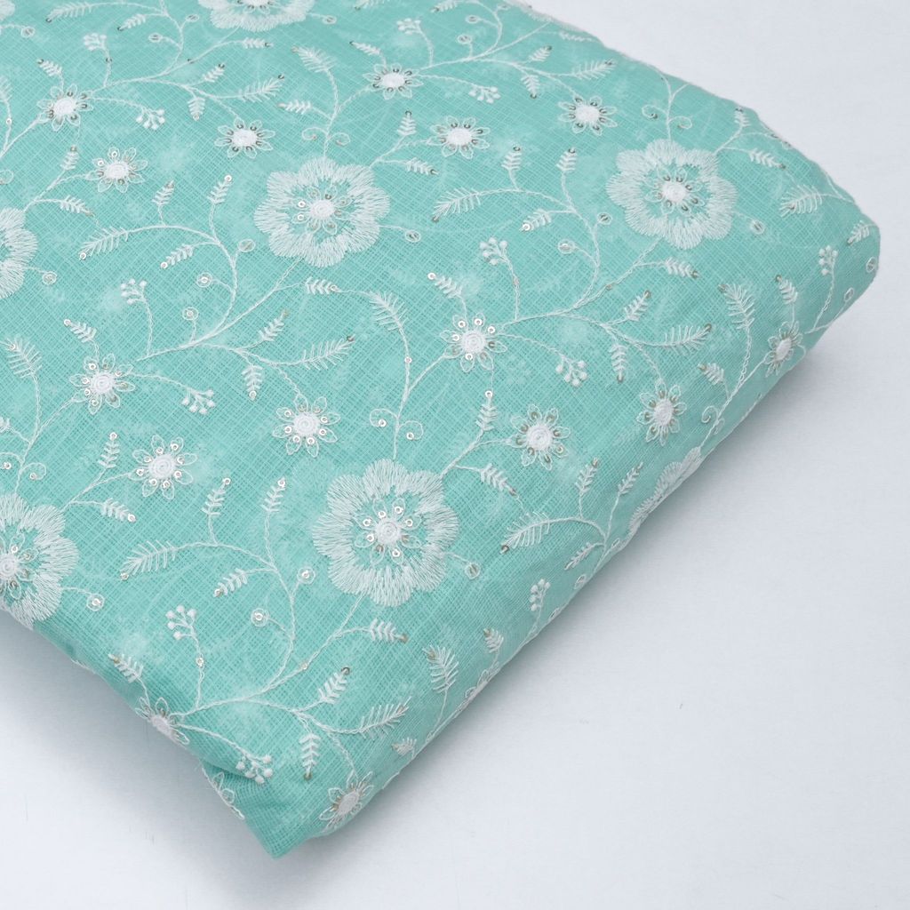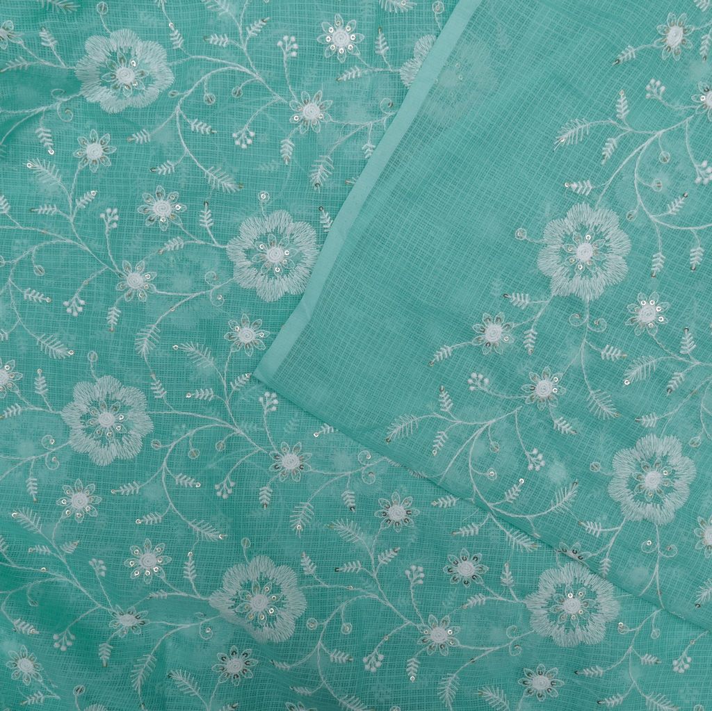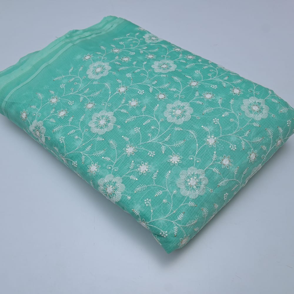 | Fabric Name | Green Color Kota Doria Embroidered Fabric |