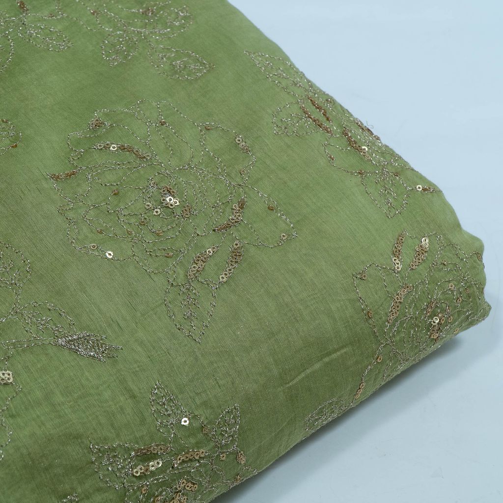 | Fabric Name | Green Color Mal Chanderi Embroidered Fabric |
