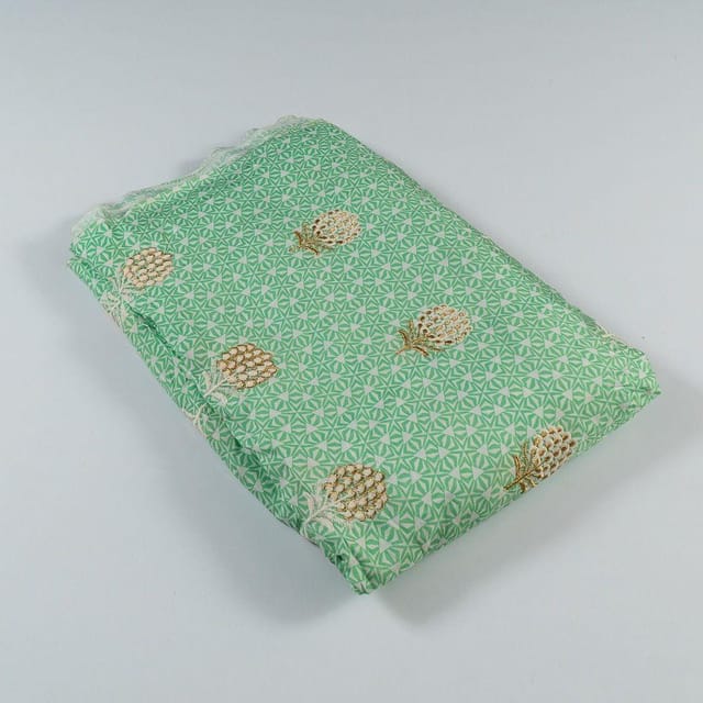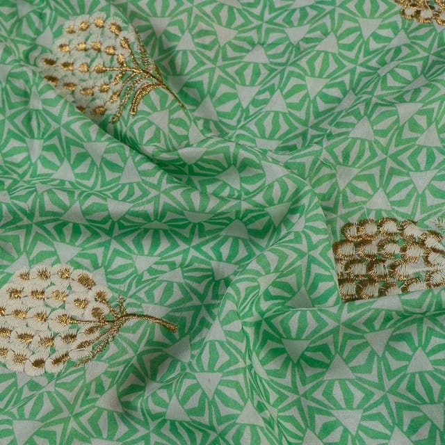 Fabric Name | Green Color Muslin Print With Embroidery |