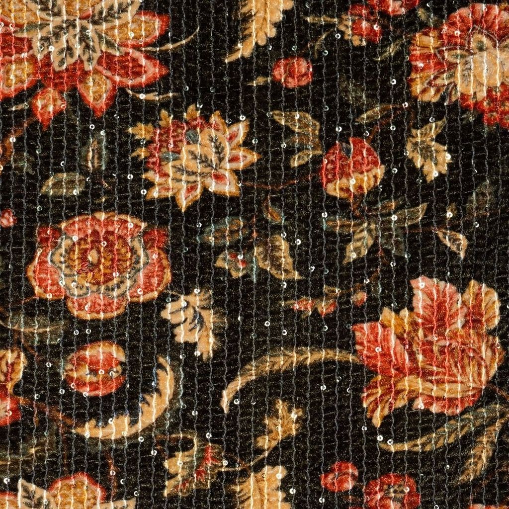 | Fabric Name | Green Velvet Fabric with Embroidered Floral Designs and Sequins |